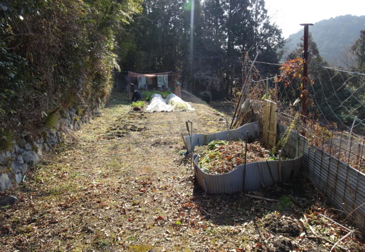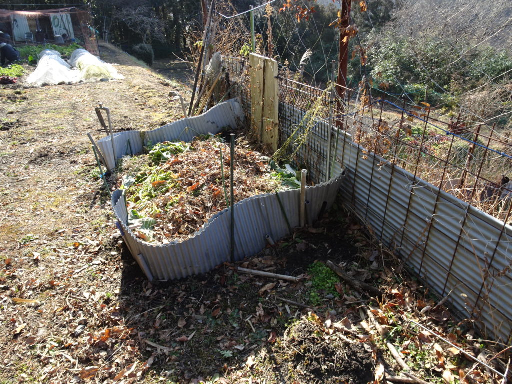 畑に、野菜の残りかすが山積みにそしてクヌギ・コナラの枯葉があちこちに散乱してます。正月明けから畑に囲いを作り貯めています、すごい量がありこれはびっくり!