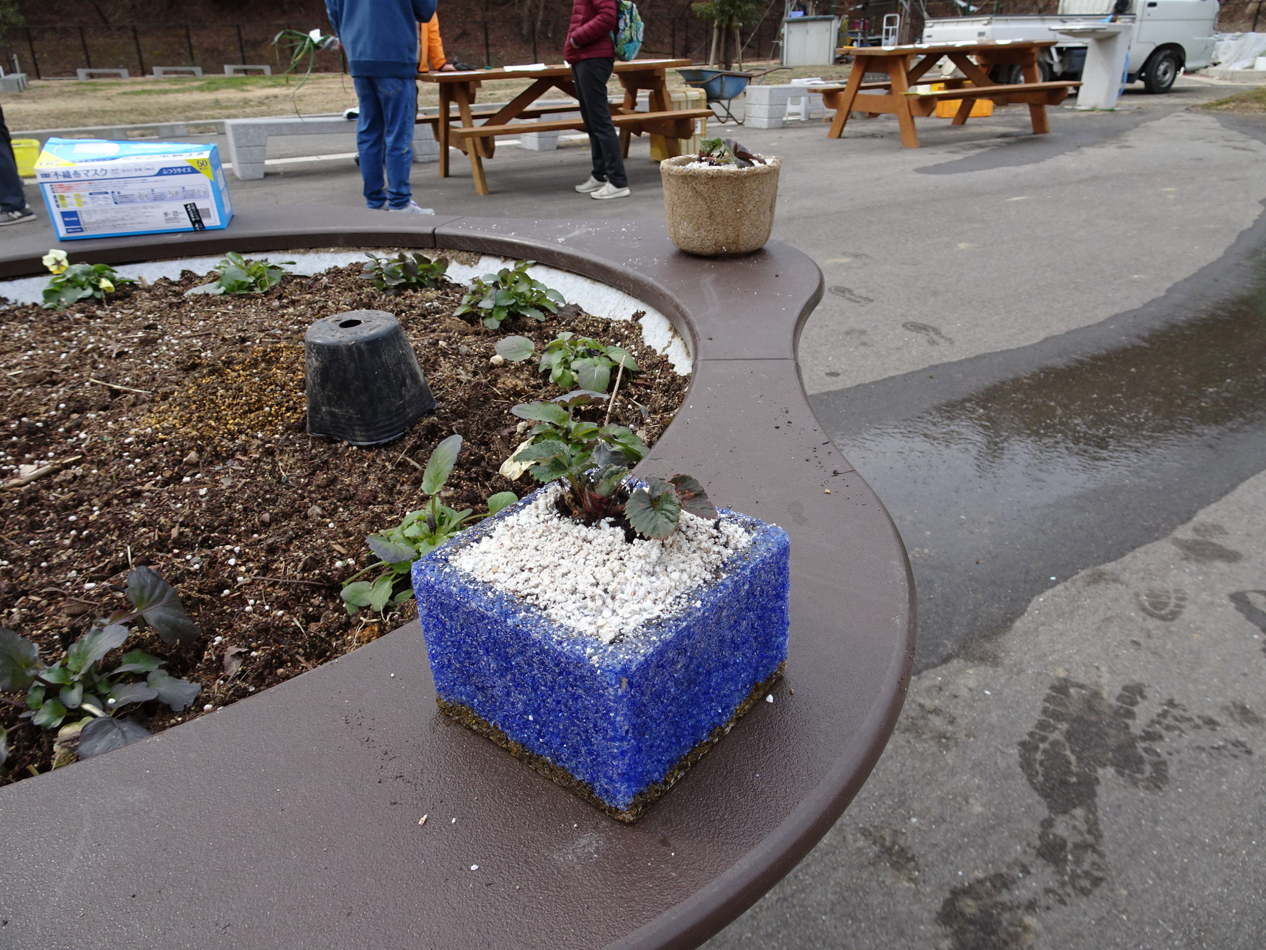 木枠がうまくはがれずドライバーとカナヅチではがしストーンのみにすると植木鉢に利用できそうです。植木鉢を菜園に持って行き下にたい肥を入れイチゴの苗を組み入れて上に、白いストーンをひき詰めて完成、しばらく水をやりながら温室で育てます。