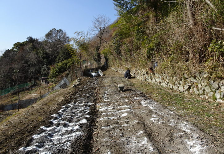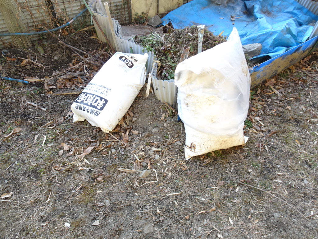 春の陽気ですが、土は、まだまだ固く悪戦苦闘しましたが、くど石灰を入れ何とかかき混ぜ成功。10日かぐらい置いて、元肥の牛糞たい肥を入れて更に、10日かぐらい置きます。そしてジャガイモの植え付けをします!