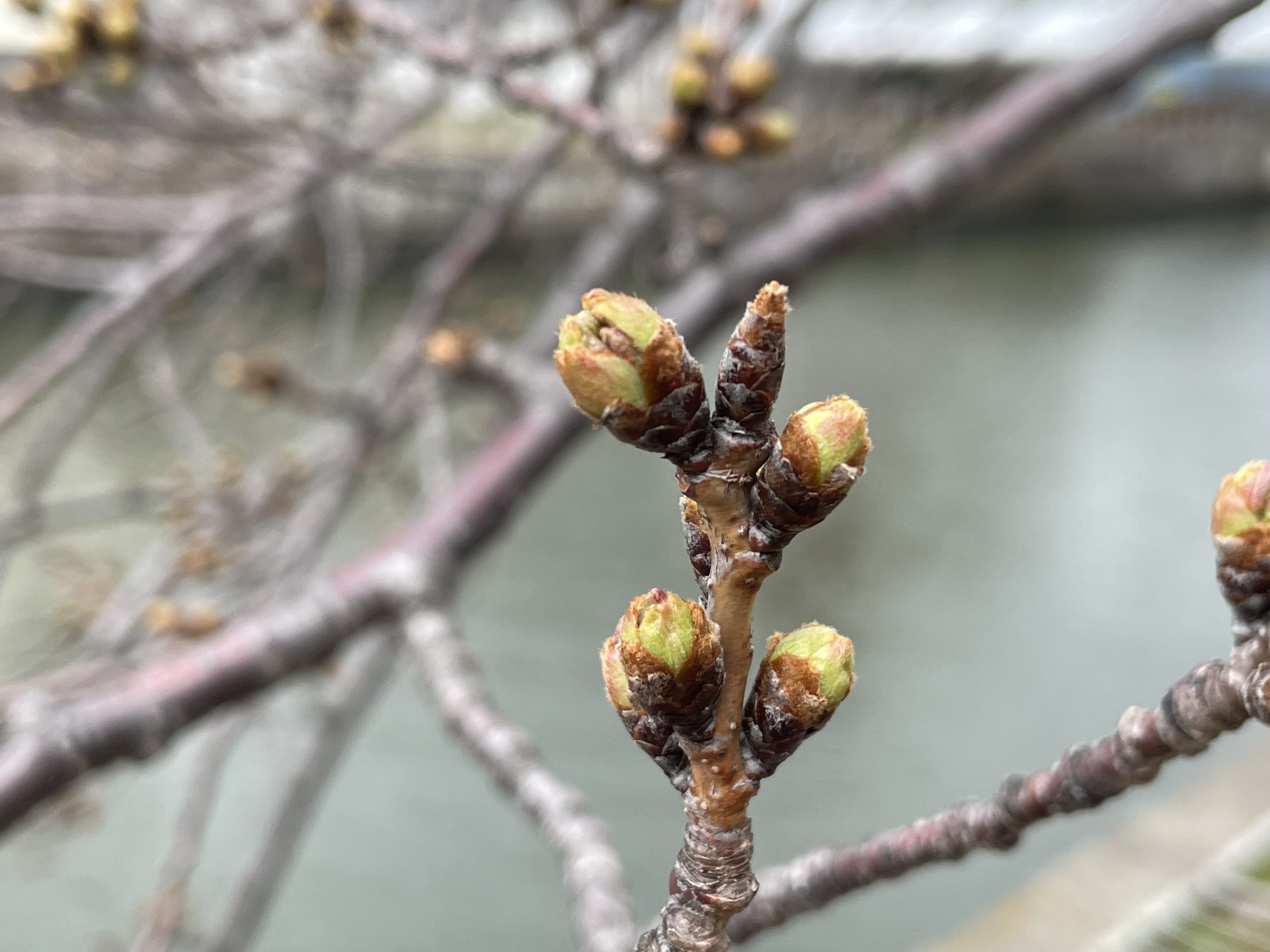 桜も暖かい日が続きつぼみが順調に育っていましたが。この寒さでキュッと戻り