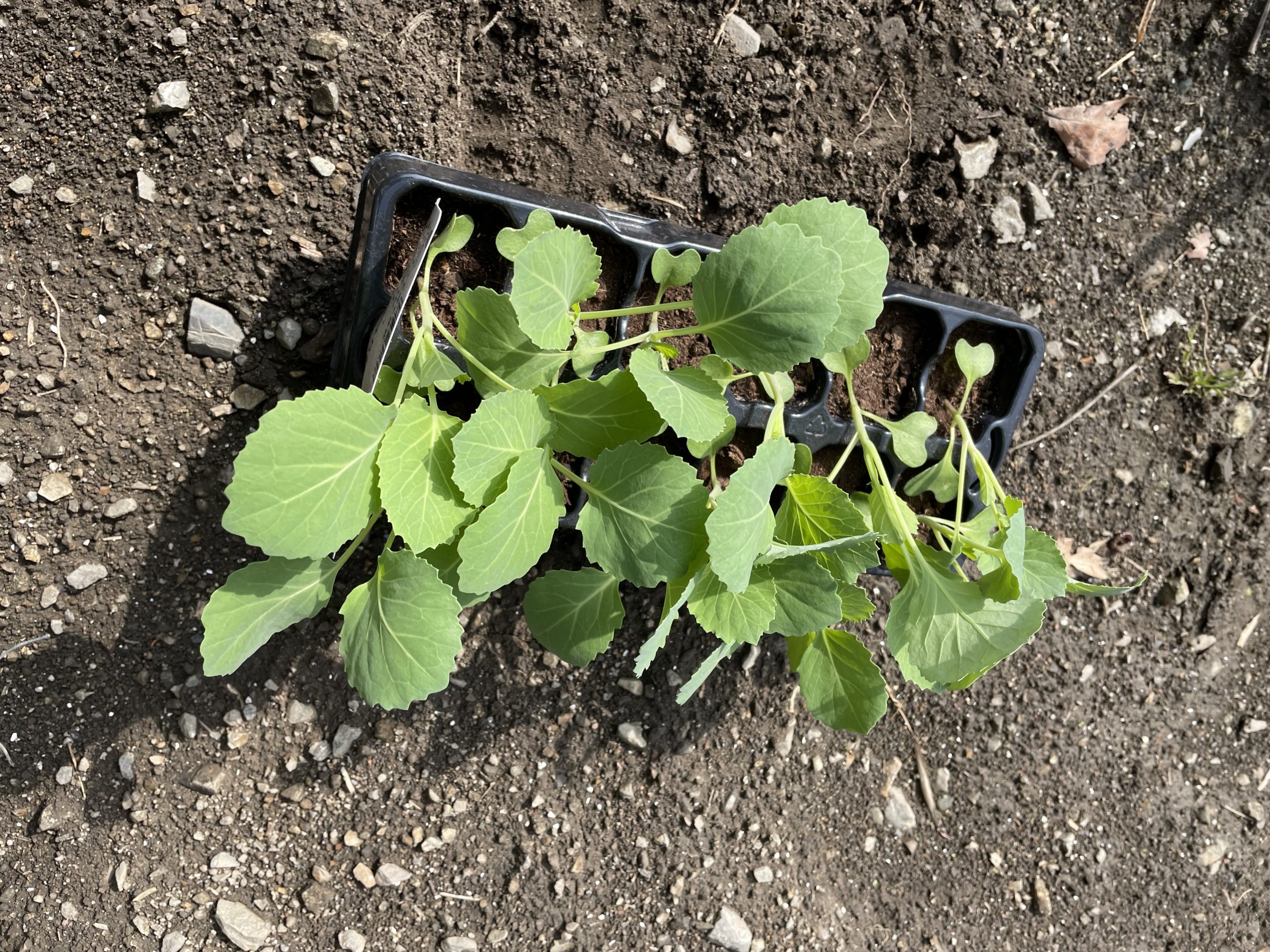 夏に向け、菜園にも野菜を植えていきます。まず今日は、キャベツの苗を12個買ってきて、畝づくりの終えた畝に、植え付けをしました。
