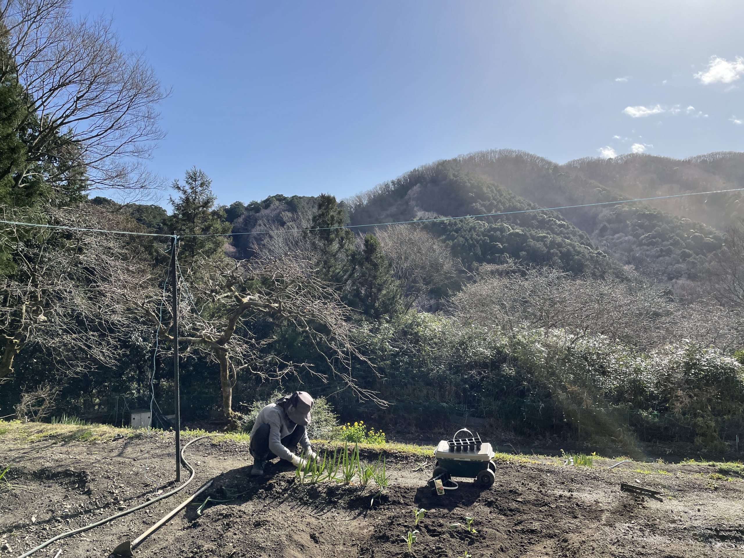 畑に行くと春独特の少し霞がかかったような天気です。そしてお日様のあったかいこと土いじりをすると汗が出てきました。土の中からミミズが顔を出し良い季節です。