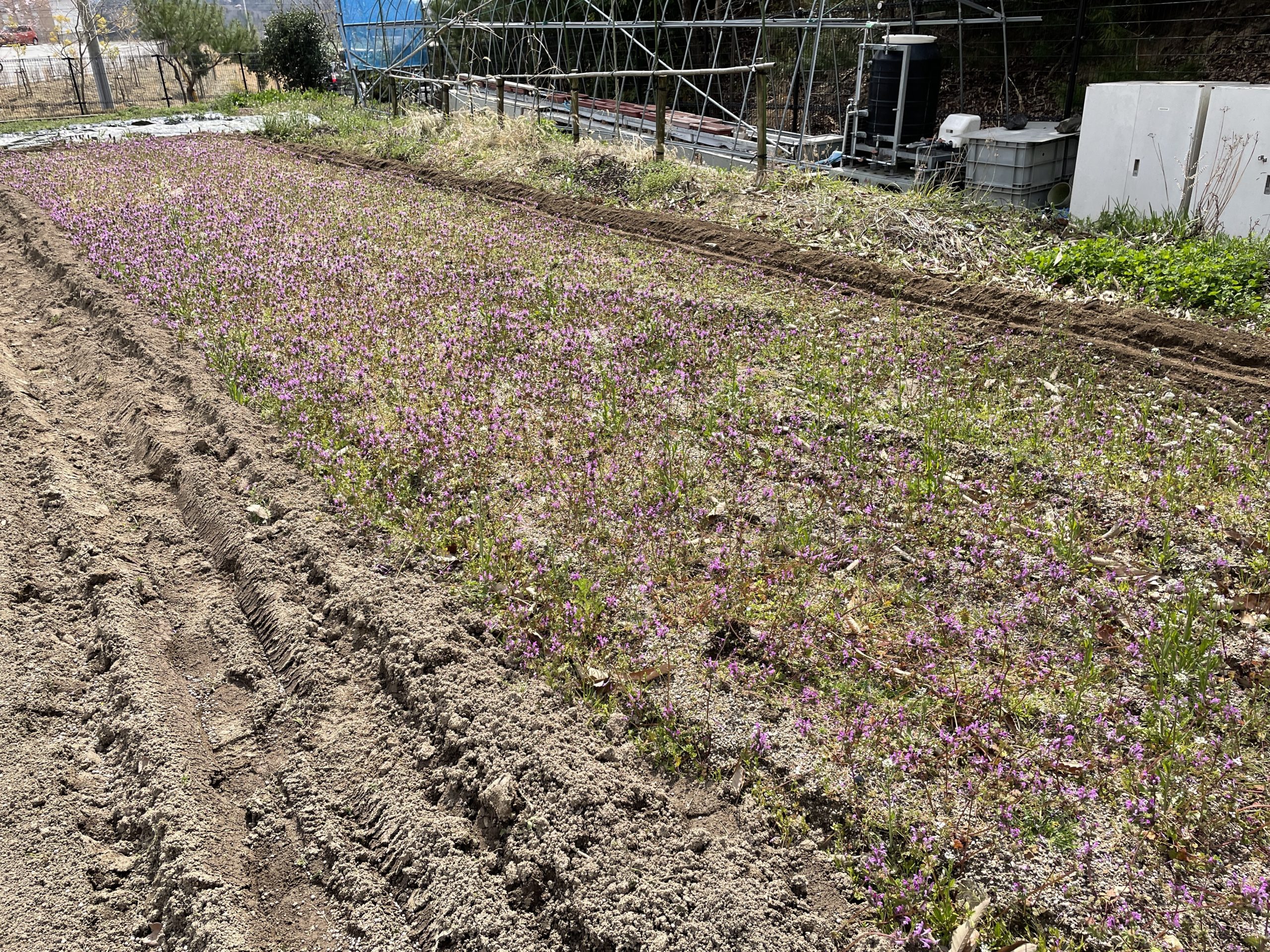 山々の桜は、少し暖かくなると一気につぼみから華が開き始める。いい季節になってきました。茶色ばかりの山の景色が新芽の色で明るくなり畑は、ピンク・紫と明るい花が咲いています、そして、畑の土がそろそろお越し夏野菜の準備へとねだっています。ここ豊能は、昔からの里山で、自然を楽しめるところウキウキしますね。今日は,里山のクラブの活動日、一日、畑の土づくり。