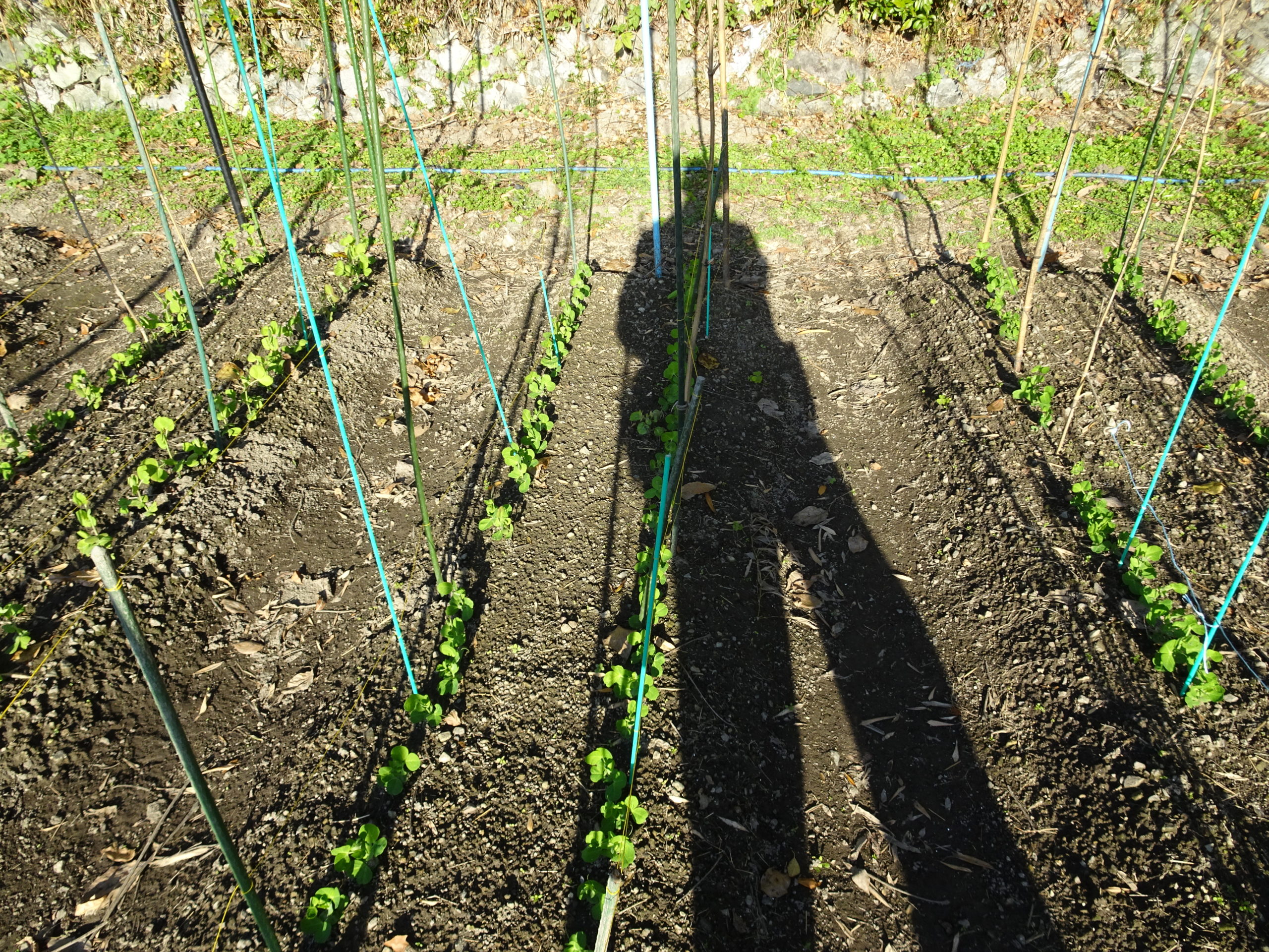 豆は、吊るが「ヒョロヒョロ」と伸びてきます、例年より成長が早い