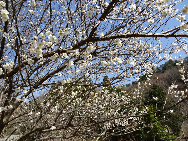 里山の公園の梅の花が満開です、そして「エドヒガン桜」が花が