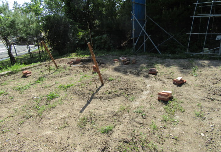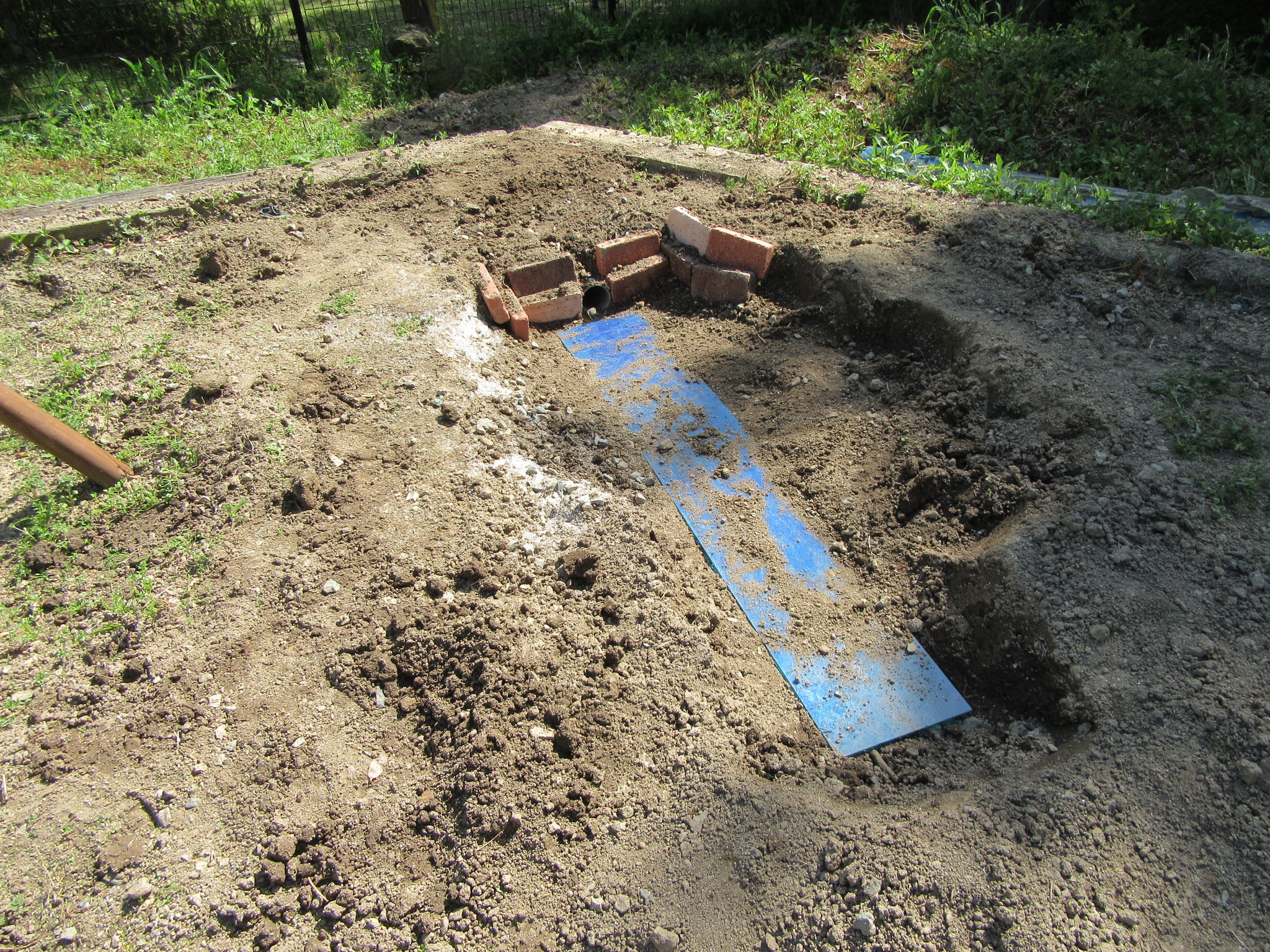 排水口が取れてないことがわかり、道路側の方にパイプを地面に埋め込み排水の口と掘り込みを入れた、