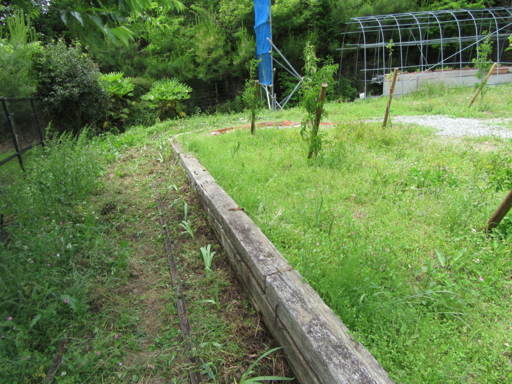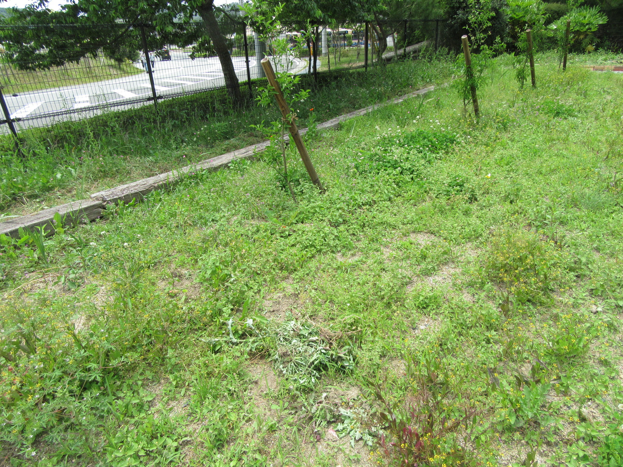森町の果樹園の野草が成長し一面に広がってきました。背の低いものは、出来るだけ抜かないでそのままにしておこうと置いて置いたら野草は、すごく強く繁殖力も半端じゃないです。アザミとか少しとげのあるものは抜くことに、今日は、周囲にもらった「カキツバタ」を植えました。ど