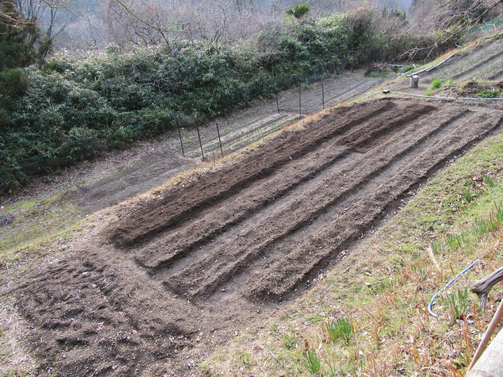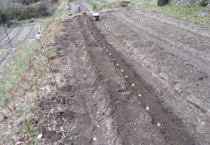 2024.03.14 未分類 ジャガイモをようやく植えれました 3月に入り、寒の戻りで寒い日が続きましたが、今週から少しづつ春の兆しがあり今日思い切って植え付けました。豊能も氷点下の朝が和らぎ、春に向け始動しはじめ土も元気になり、畝の中へキタアカリを包丁で半分に切断し消毒代わりに灰を付け植えこみました。 投稿者: 昭良林 未分類 里山の落ち葉かき前の記事 薄っすらと春霞がかかる次の記事