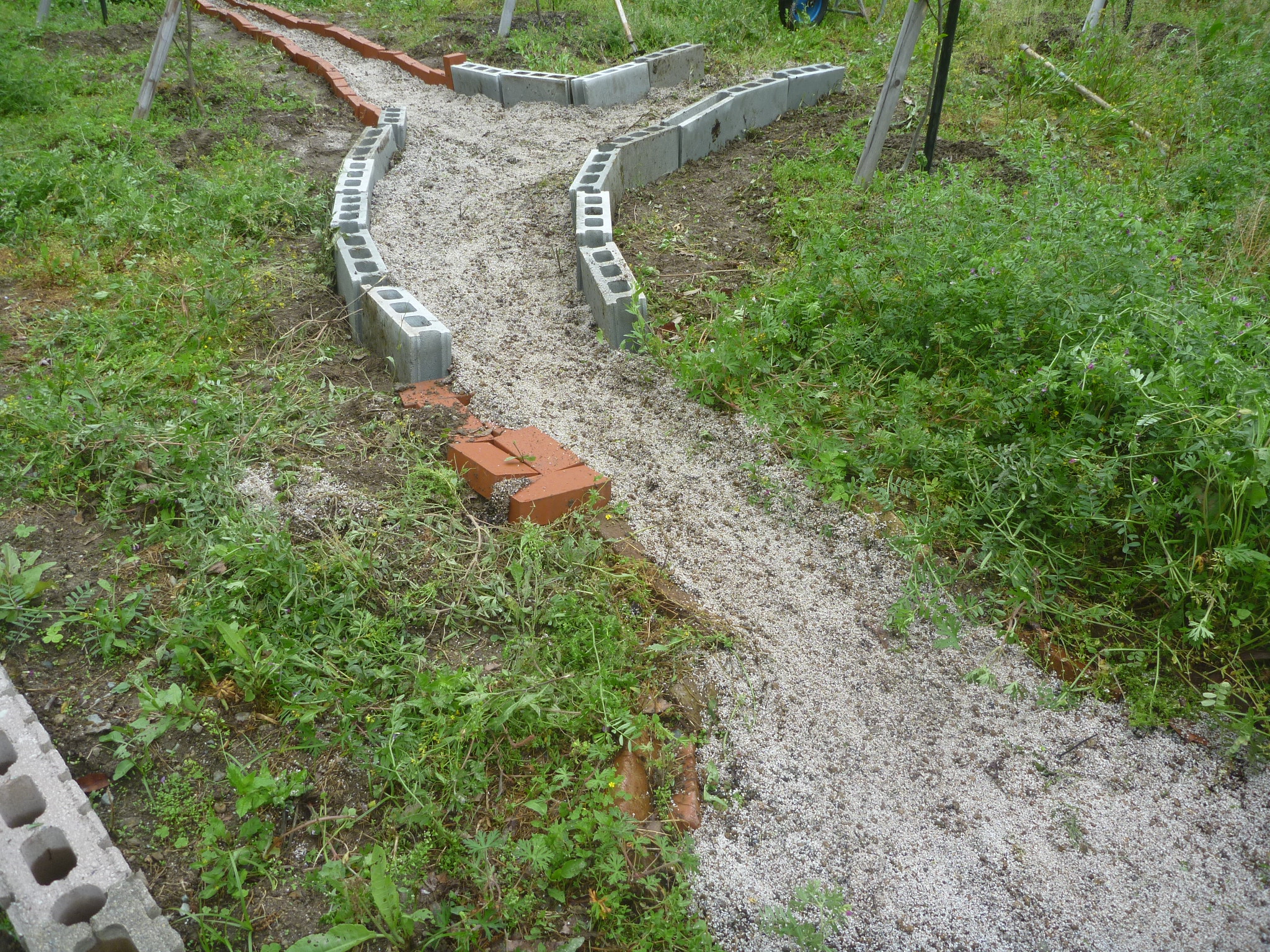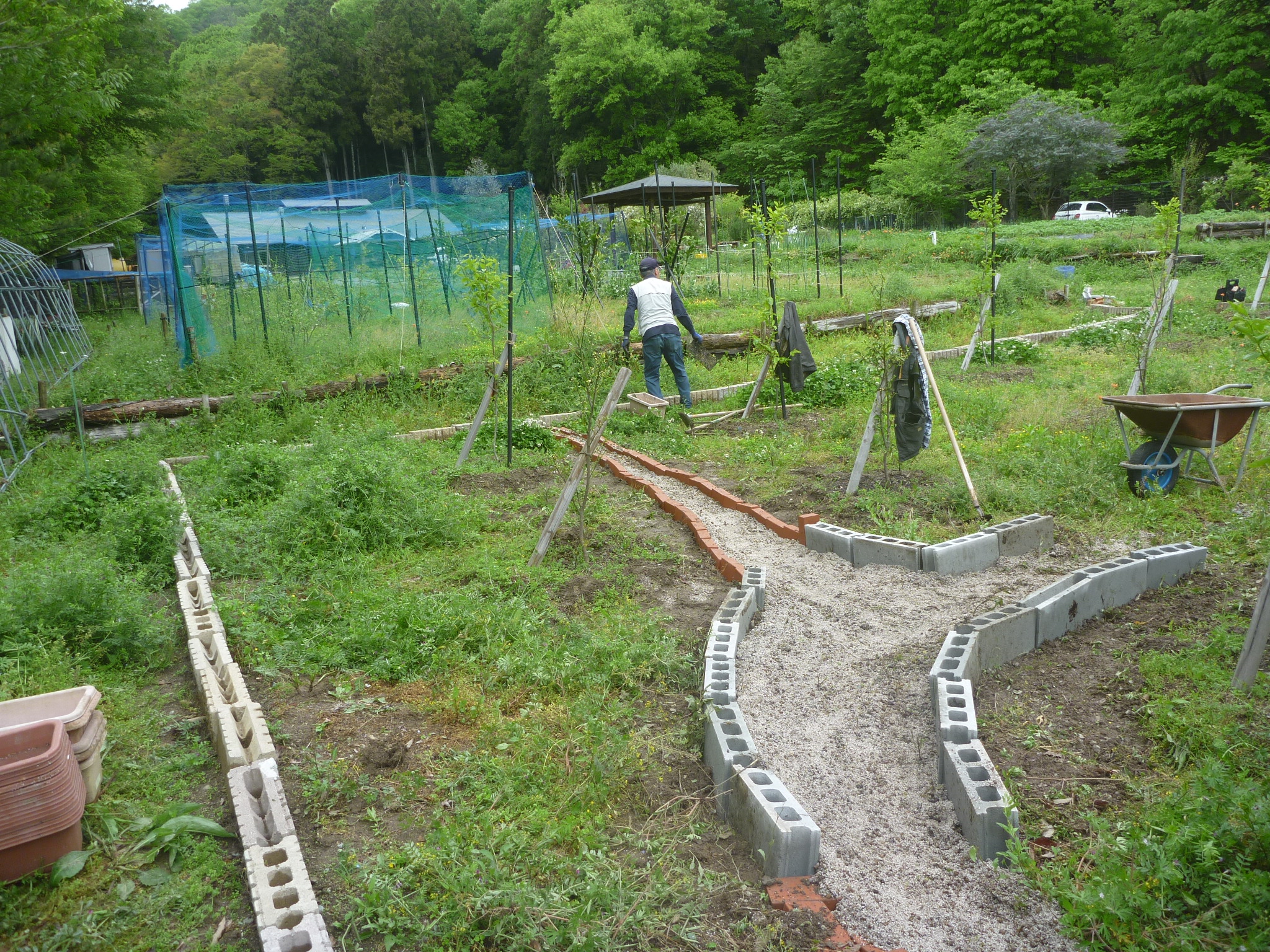 里山管理小屋の前のガーデンに、昨年の春から果樹園づくりをして、早1年になり「柿や柚子」を植えています。果樹園の高低差からどうしても水たまりができぬかるむので中央とサイドに水抜きを作って水はけがよくなるようガラスや瀬戸物の廃材を粉砕した石を敷き水はけを良くして排水路を作りました。