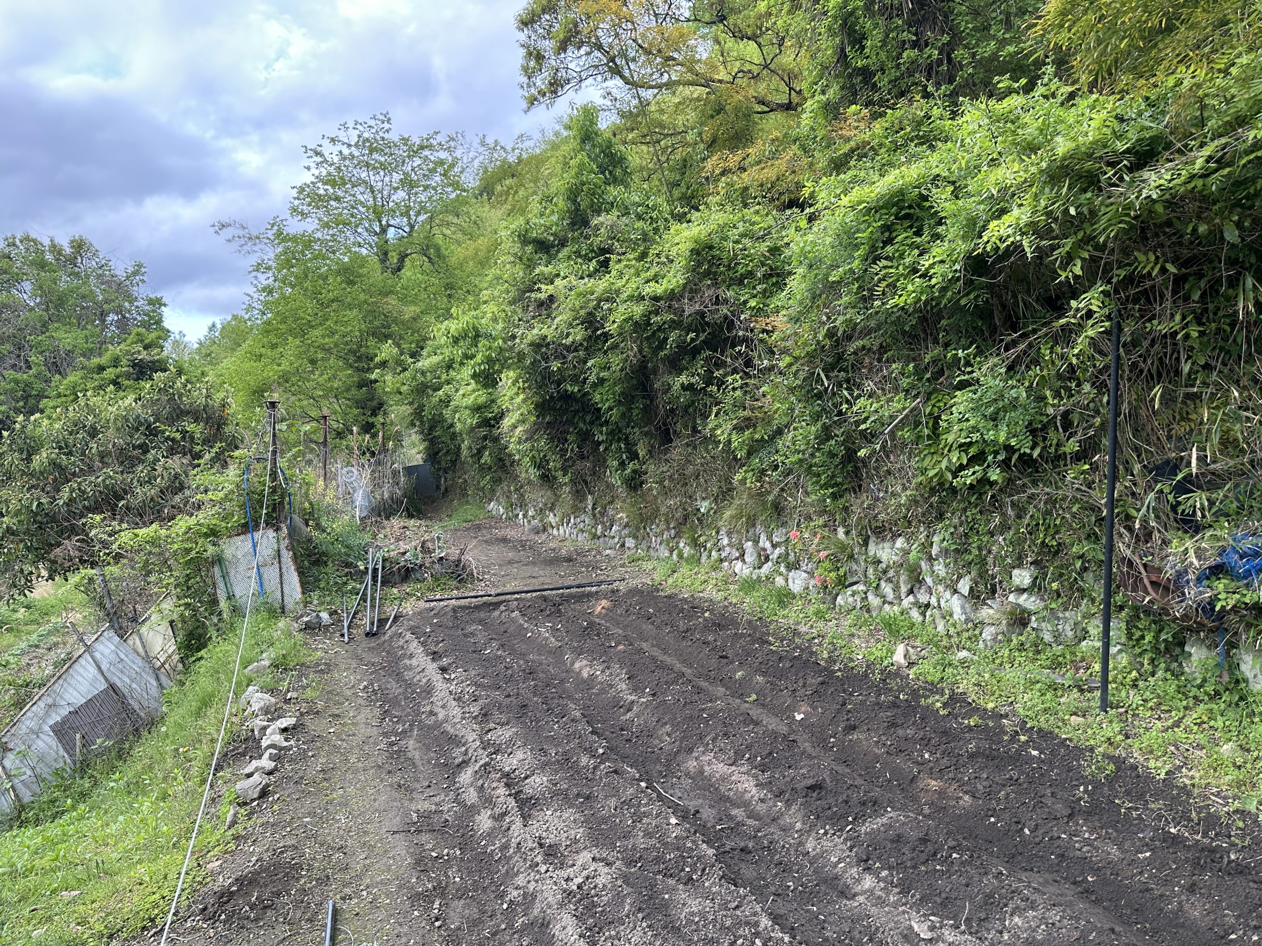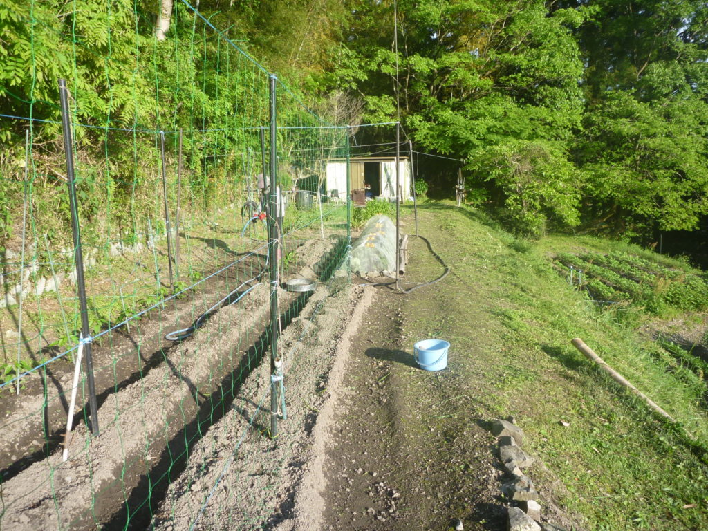 4月中頃からぼちぼちですが、畝づくりをしだした。4月は、雨が多かったので冬場の落ち葉を積み上げ雨に打たせ土交ぜをしたそして混ぜた土を畝に乗せ、耕運機で混ぜ、今年は牛糞だけでなく鶏糞も入れ一緒に、混ぜ合わした。そして放置し最後の土交ぜを行った。結構土がふかふかになっきた。そして夏野菜はキュウリのようなつるもの・トマトのような枝に実がなるものと結構支柱・ネットなど支えが入るものが多いのでまず支柱づくりも重要なので、そこまでの準備をすましてから苗植えを行うことにした。ゴールデンウイーク明けから本格的な苗植えを行う。次は虫対策かな?夏野菜は結構手間がかかる!