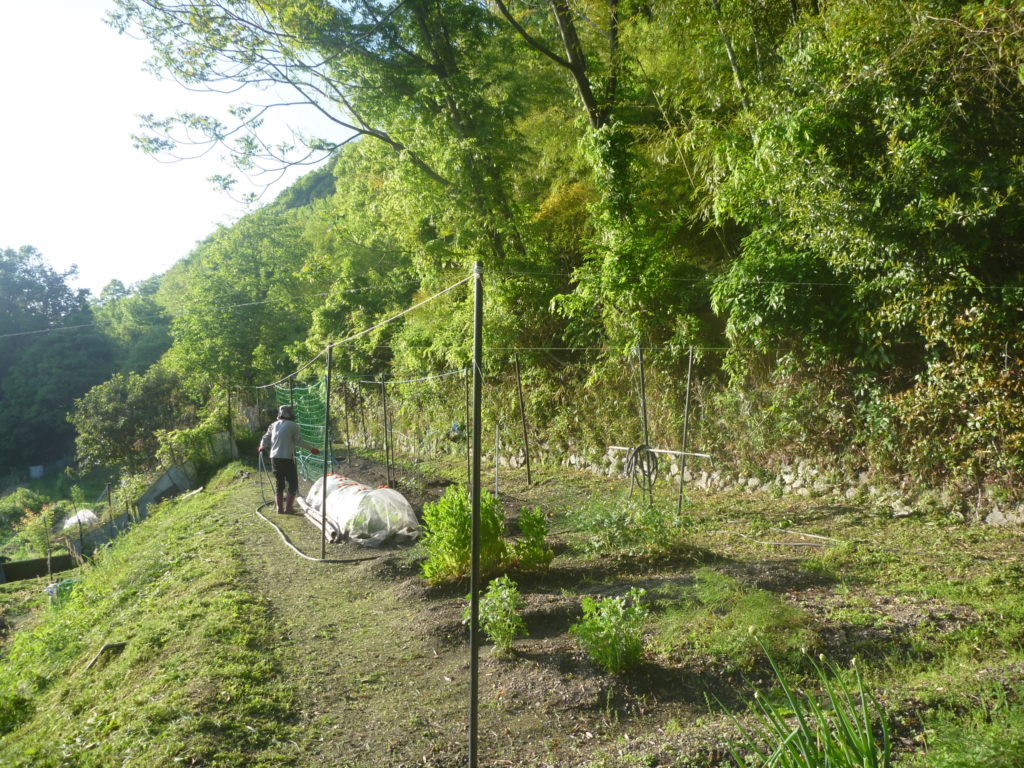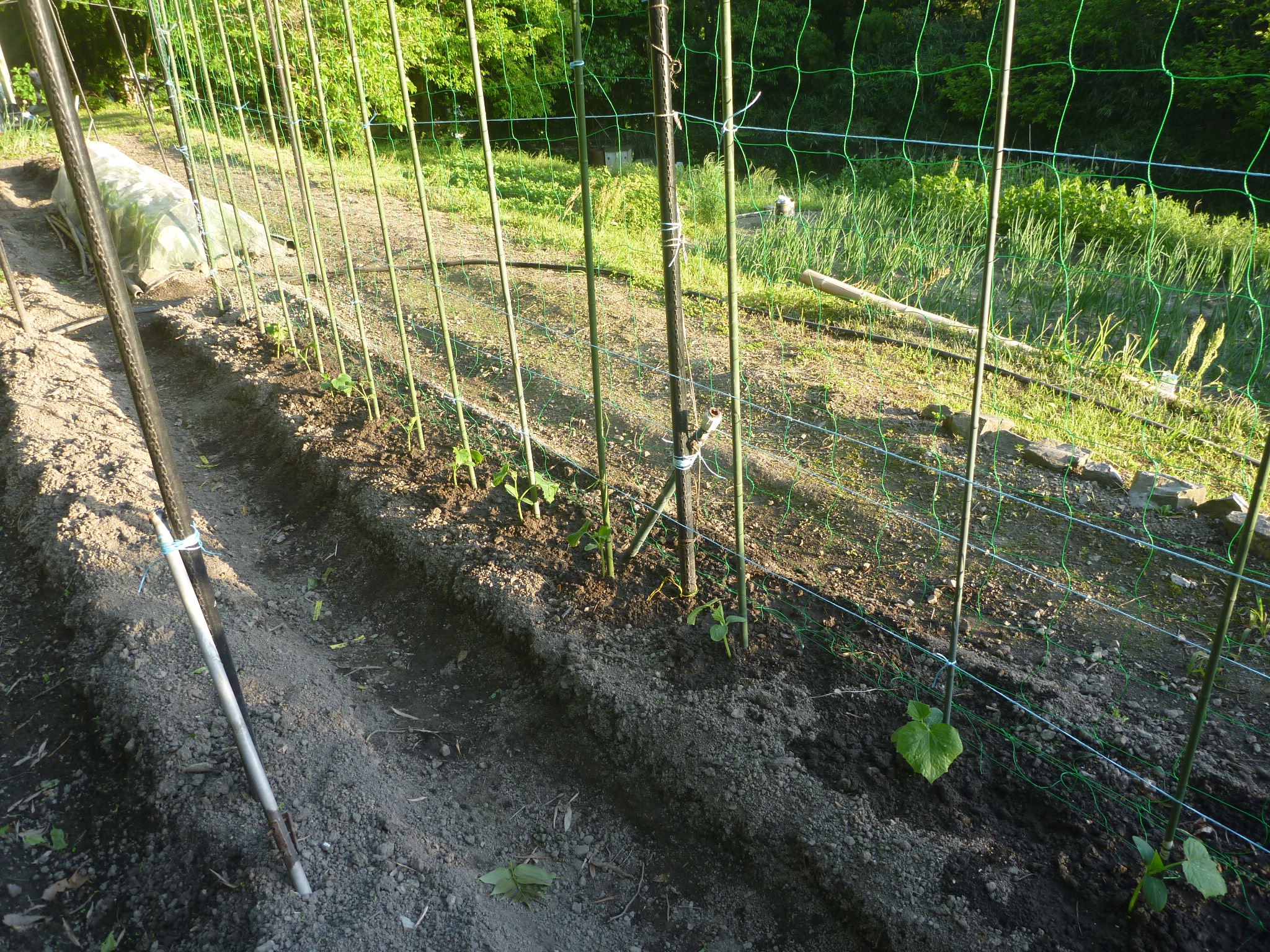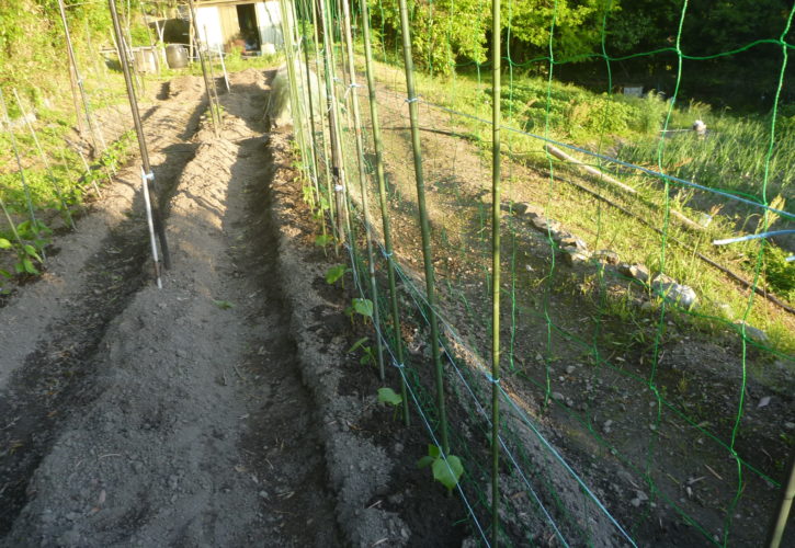 だんだん菜園の上段のところに、「キュウリ・トマト・南京・ピーマン」を植えるピーマン以外は吊るものなので集約したほうが管理しやすい特に、実のなるものは、ハクビシン・アライグマ・カラスが狙ってくる。毎年のことなので、よく覚えている収穫時期になると自然と集まってくる今から防御策を練らないとおっとその前に、畝の方向を変えないと横から縦に、長細く吊るネツトはれるように結構手間がかかる。ようやく終わったのは、6時回ってた、日がずいぶん長くなってきた!