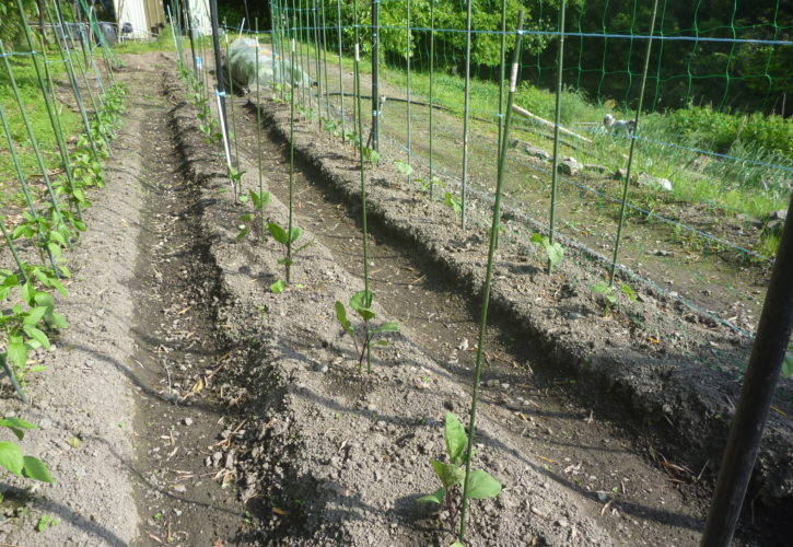 夏野菜は、結構枝が細く支えの支柱をしないと自立できないのが多いです。ナスはまず一本で支え大きくなるにつれ両端にも支えをしますそしてナスとキュウリは肥料の追肥と水が決め手です昼から温度が上がり帰りに水やりをしました。明日から30度近くになるというので、冬場と違い日課にしないと今年は、久しぶりに水まきのホースも取り換え準備万端です。そしてこの夏のお家の野菜を賄わないと!