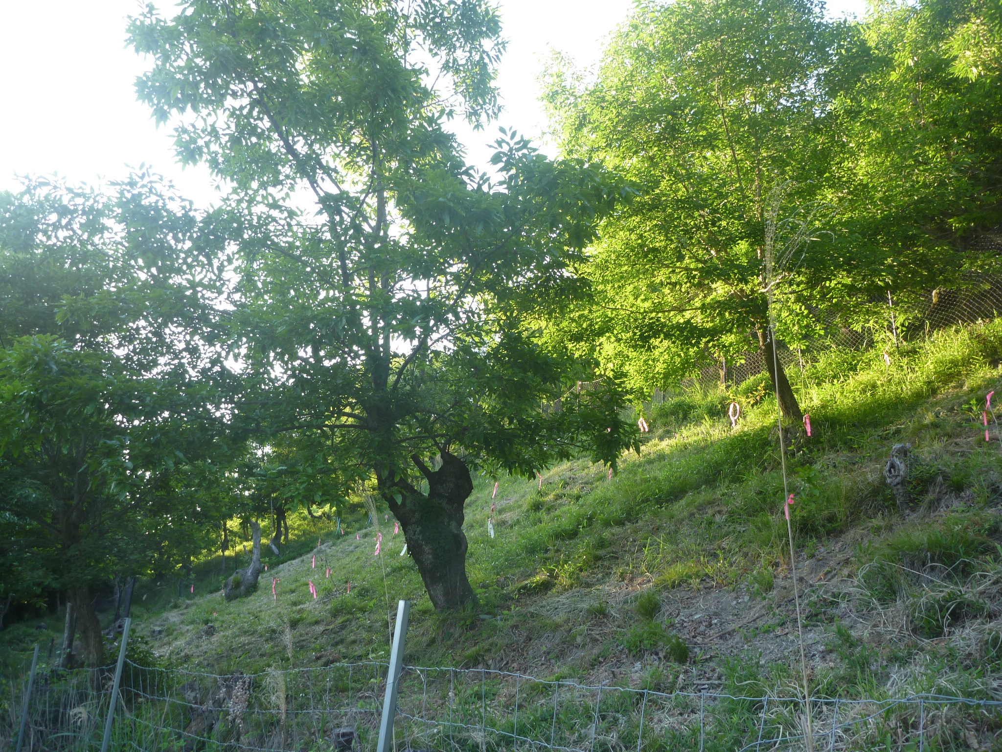 豊能の妙見山へ続く山々は、コナラ・クヌギが多く植えられている。昔は、生活の燃料として活躍していたが、昨今、化石燃料が主流ですが、それでも茶道の湯を沸かす燃料などとして菊炭が重宝される。クヌギ林も適度に伐採だけでなく植樹が必要です。ちょうど新芽の時期です。でもネットを張り養生しないと鹿が新芽を食べられてしまう。そして里山を守るためクヌギを植樹し育照られてきました。ようやく新芽が育ってきました。