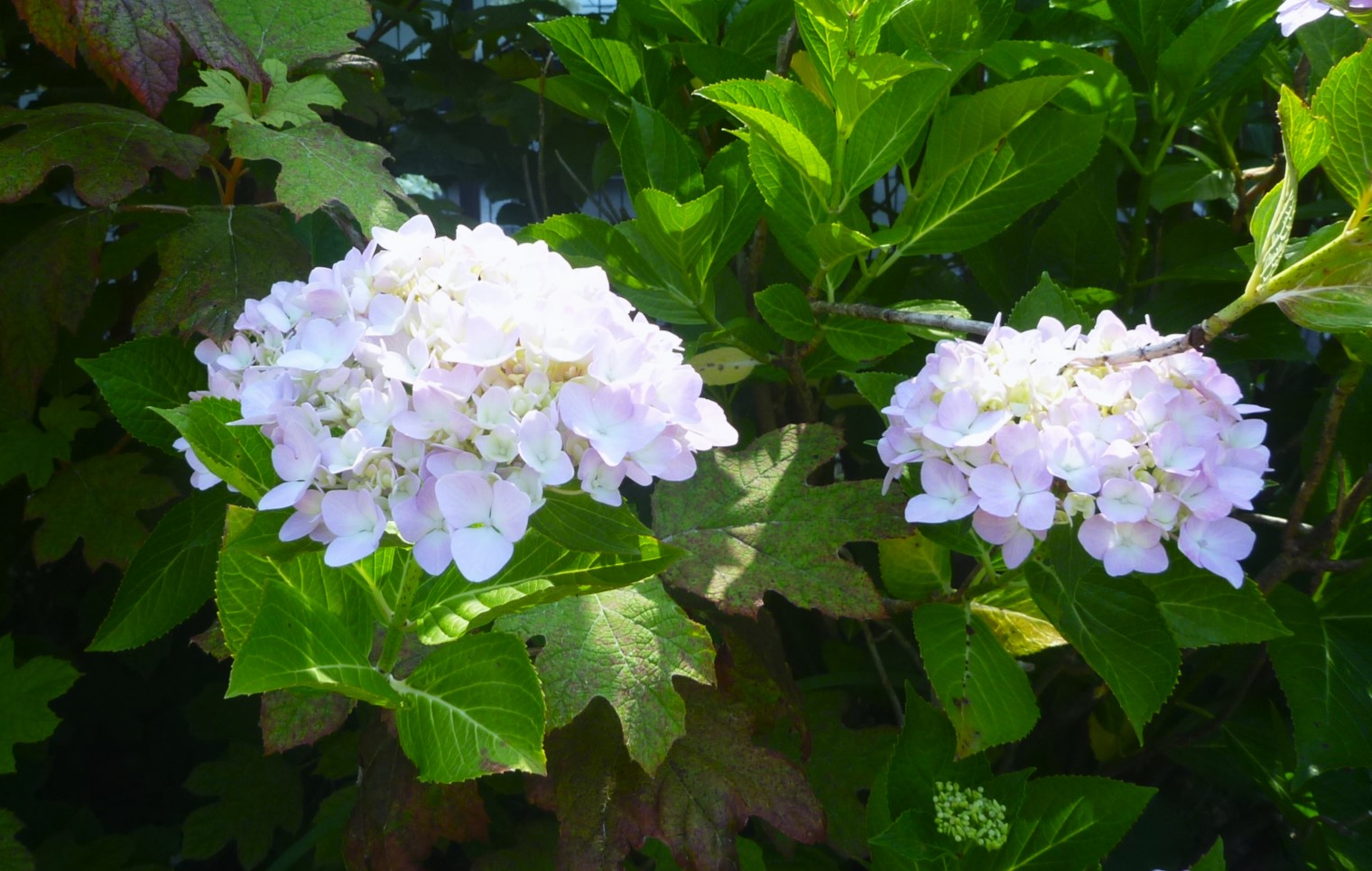 今年は、紫陽花の色が薄く白が目立つ箕面森町の里山管理小屋のガーデンに咲いてる紫陽花の色は、今年は白い花が咲いた。去年は、確かピンク青と結構いろんな色があったような6月に入り雨が少ないので土のペーハーが変わったのかな青空には合った色でも暗に濡れた紫陽花も良いそろそろ雨も降らないかな!