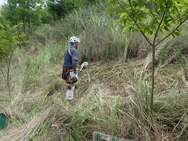 午前中から温度が上がり10時過ぎには30度を超えお昼には、34度もう7月初としては、異例の暑さです。里山の保全活動も最近は、スマホの「熱中症アラート」各段階的に情報を知らしてくれるのでこの情報を参考にして活動の継続を判断に取り入れてます。今日は、「熱中症のかなり危険」情報が出ましたので午後は活動中止としました。ほんと今年は、厳しさのレベルが異常ですので早い目の対処が必要です。安全第一で活動をしてます。今日の里山活動は「雑木を伐採・雑草の刈払いを行い保全活動」を行いました。