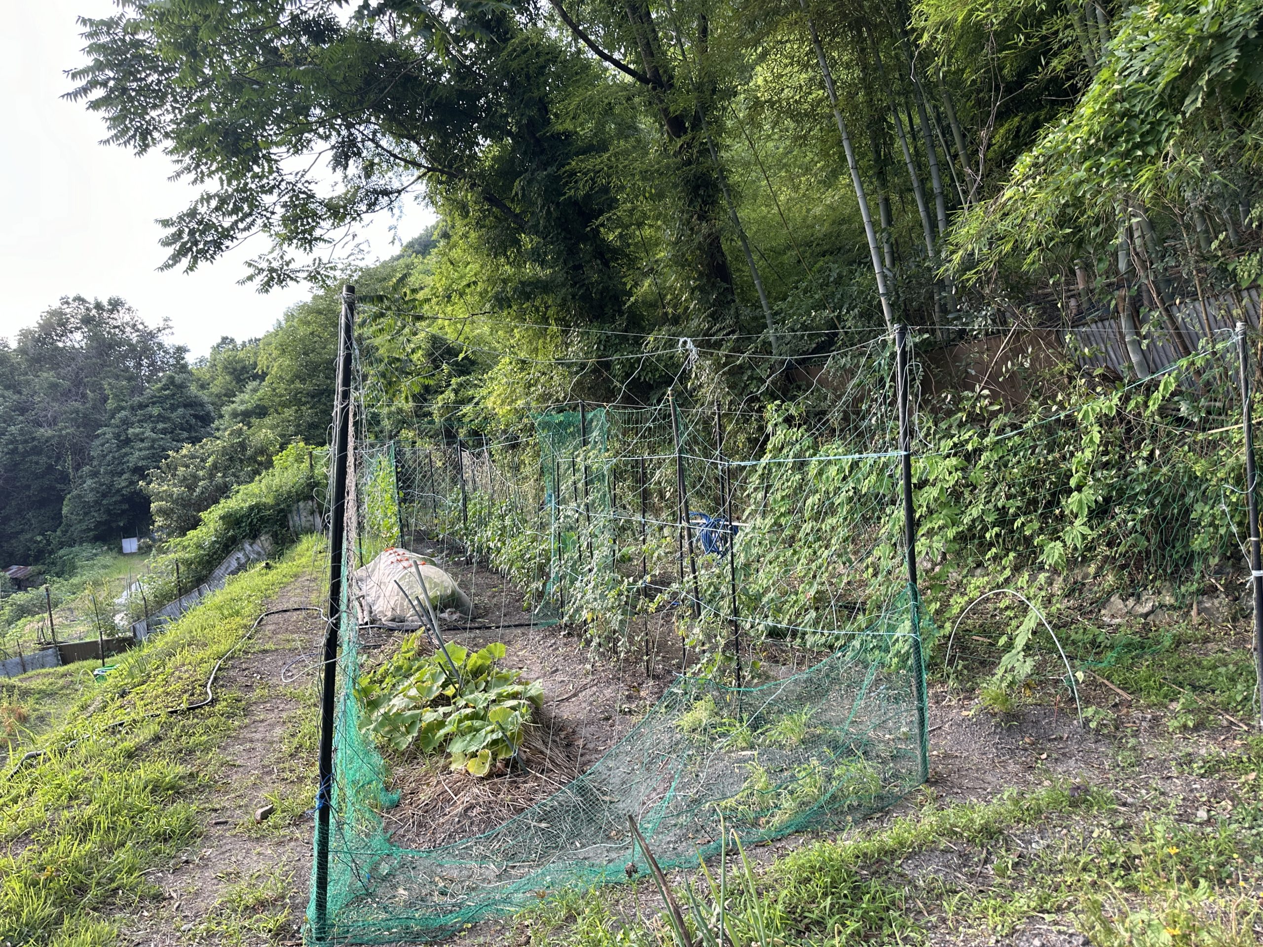 毎年、今頃は、梅雨のど真ん中で雨が降るのがここ数年の定番だ今年は、雨が降る時間が少なく快晴に近いお天気が続いている20時30分過ぎても31度これは豊能でもめずらしい現象と思う。例年なら梅雨の影響で太陽近くに雲がかかり日射を遠ざかっている。たまたま晴れの日が続きさえぎる事が出来ず反対に晴れ間が続くことで日射を増幅してるのかな?でも明後日頃からの雨に期待してこの暑さが過ぎることを願う。だんだん菜園も野菜がグロッキー!