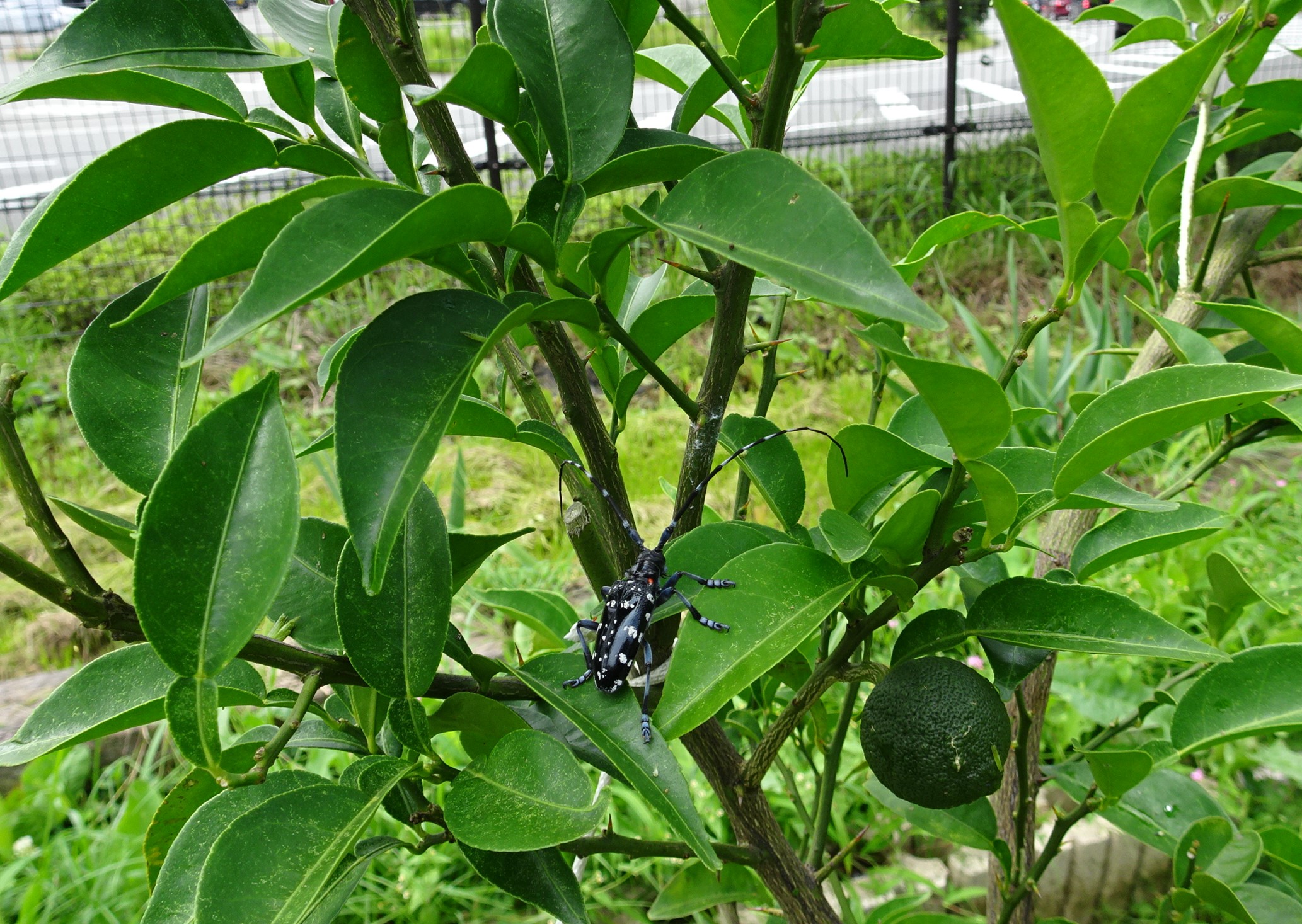 今は、蝶や昆虫たちの産卵時期かな特に「ユズ・みかん」の葉は、産卵しやすいのか訪問者が多い。今日は、カミキリムシを見つけた最近あまり見る機会がなかったですが、葉に止まり様子を伺っていたチョウは産卵jを現認した葉っぱが美味しいのか飛び回っている幼虫になると葉を食い荒らし枝だけになるぐらいの凄さだ子の蒸し暑さが育つ環境にはいいのかな今日も温度は30度に届かなかったが湿度は80%以上の蒸し暑さだ温室内に近い!