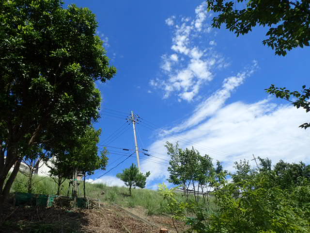 2024.07.17 未分類 夏空が見え出した。 今日は、箕面森町の法面の獣害ネット撤去後の雑木の伐採と下草狩り最終日、法面が広いので三日めだ何とか終えた。梅雨の空からバトンタッチして青空がのぞき始めた。雑木と言っても「ヤマモモ・コナラ・松など」胞子が飛んでネットの中なので育ってきたのかな間隔と高さをそろえ日差しが入るよにした。昨日より湿気が取れ何とか一日活動できた。 OLYMPUS DIGITAL CAMERA OLYMPUS DIGITAL CAMERA 投稿者: 昭良林 未分類 果樹園の木々の養生前の記事 初夏の野菜苗の撤去次の記事