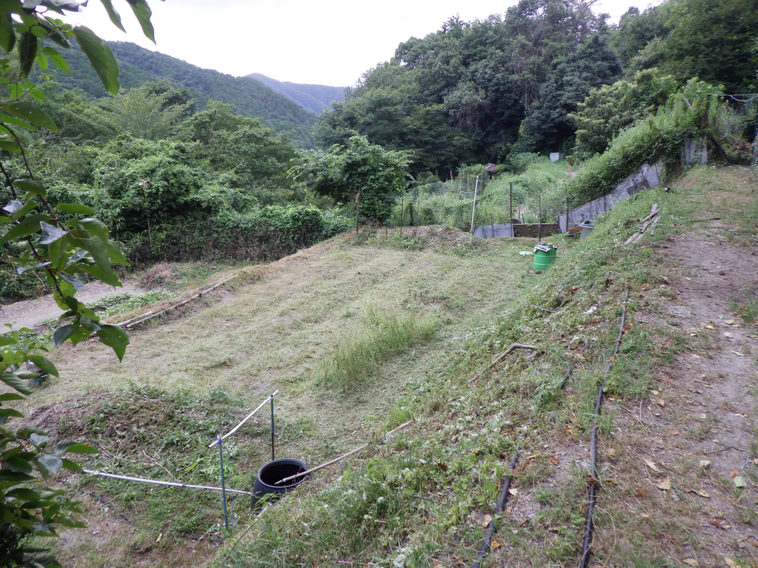 玉ねぎの収穫から、2か月畝を休ませていたら雑草がいき良いよく伸び放題、この暑さで延び延びになっていたが、昨日から暑さが和らいできて、そして今日は、台風のせいか少し雲が張り出し太陽を遮ったので思い切って草刈りを行いました、何か切り倒しただけという感じ、明日からこの刈草を一か所に集め再利用を考えようと思う。