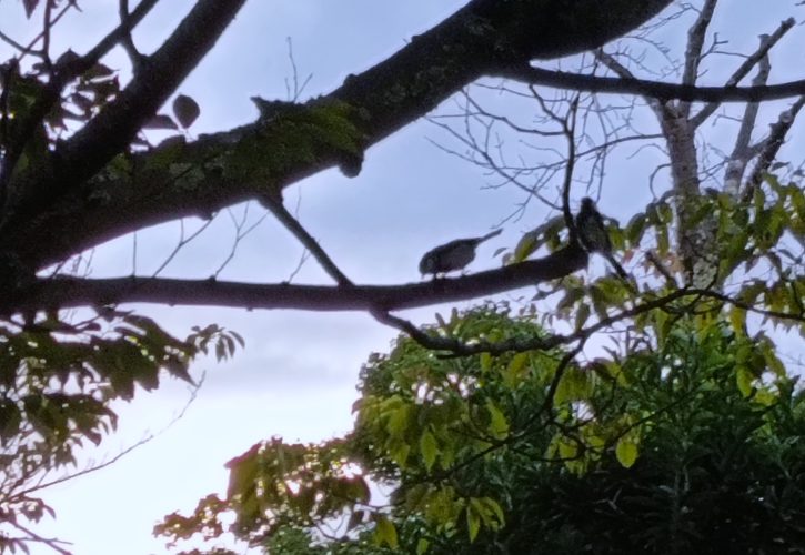 今日も相変わらずの暑い一日でしたが、夕刻、東ときわ台の公園に、里山から野鳥の「シジュウカラ」の小鳥が仲良く虫取りをしてました。昼間は、炎天下暑いですが、夕刻より雲がかかりしぐれそうです。そのせいか蒸し暑さが増しています少しの雨でも涼しくなるので降ってほしい!