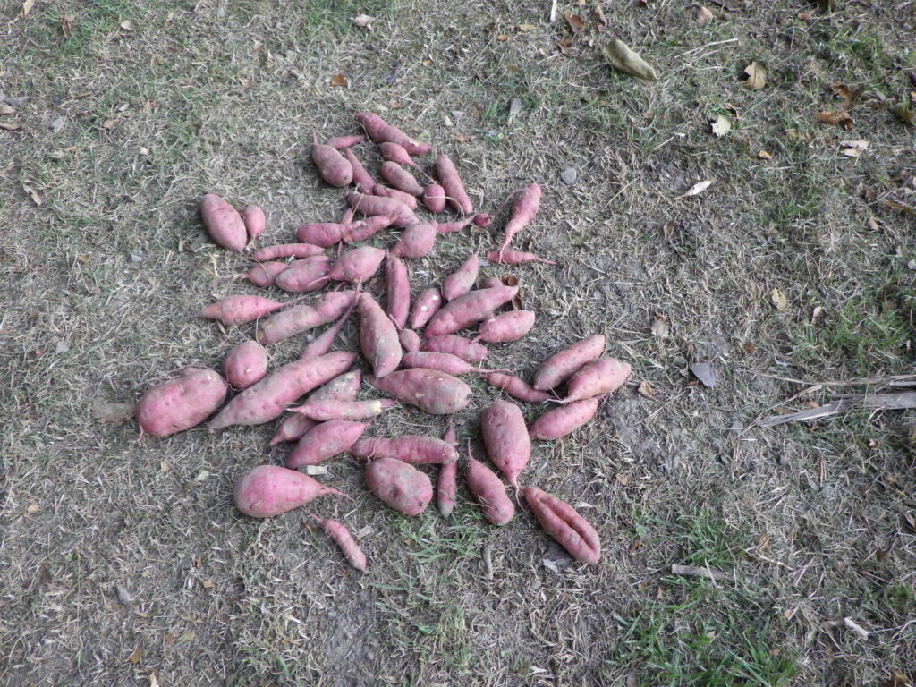 ようやくだんだん菜園にも「秋の訪れ」厳しい残暑が続いてますが、なんとか「大根の新芽も育ってきました」今年は夏の厳しい暑さで、渋柿ですが、隔年で沢山の実を付けますが、今年は、初めは、沢山の実を枝につけていましたが、この暑さで陰に隠れている数個しか実が残ってません、これは、柿自身が、木を守るため実を落とし木を守ったのかな??「サツマイモ」も早くから実を付けボチボチと収穫してます。今年は、実が大きくなりすぎないよう小さいものを早めに収穫してます、小さくても結構おいしく育ってます。