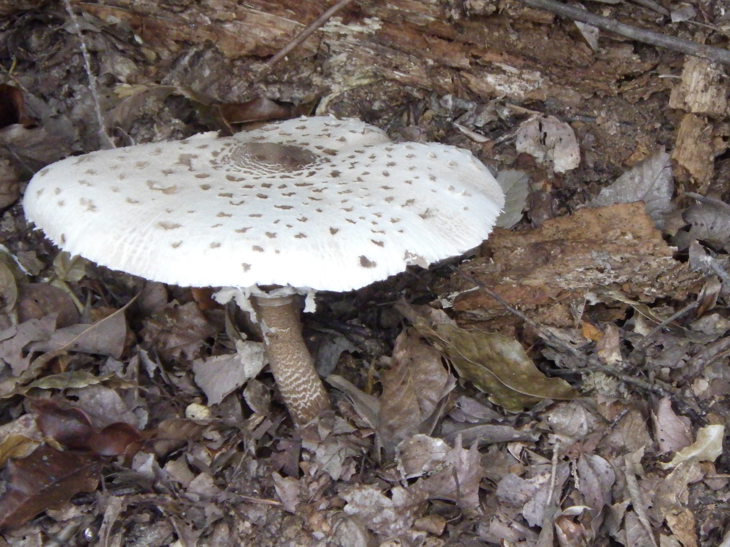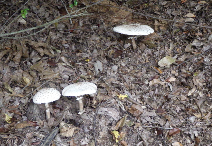 今週は、一日雨と言う日は、無いが曇り空が多い、朝から雨が降ったり、日がさしたり目まぐるしく変わる天気でした。今日は、箕面森町の里山の周辺道を見て回ってました、寒くはないですが、日差しのない分、少し肌寒さを感じます、歩くのに丁度いいかな!今年は、日差しもきつく乾燥もしていたのでキノコが少なかったですが、ここ暫くの季節の変動などで、急激な温度低下、突然の雨、そして、秋雨前線がまだ残り、しとしと雨が、あり、キノコが増えてきてます。白い大きなキノコが、生えているのを見つけました。椎茸のような感じのカサですが、毒キノコです。キノコは、毒性の強い物も多く触っただけでも炎症の起こすものもあります。採取したり、持ち帰って食べないよう!よほどの専門家でないと見分けは、困難です。