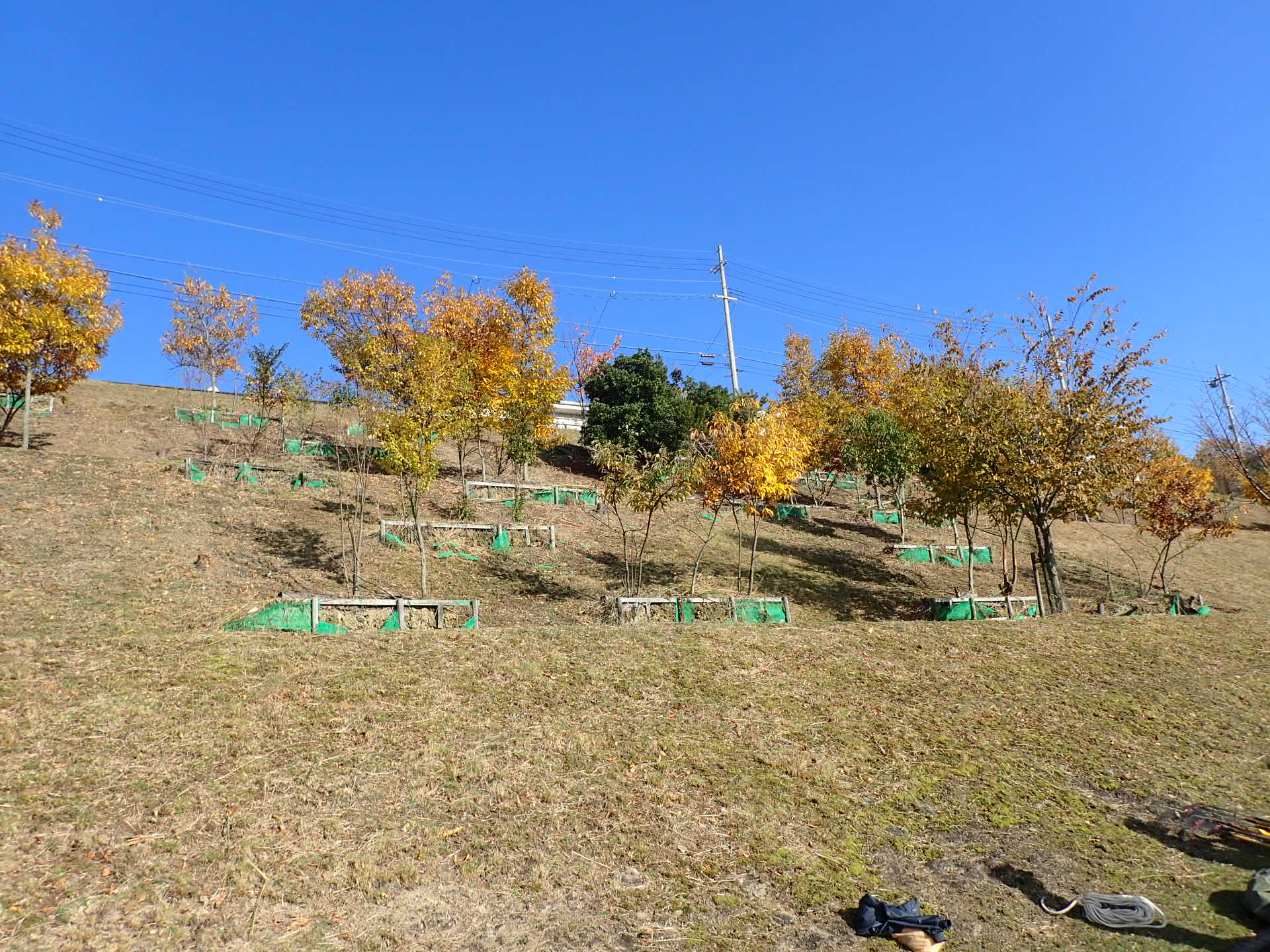 2024.11.27 未分類 箕面森町の木々の紅葉 今日は、NPOの活動日で。箕面森町のバスセンター上の法面の除草をしました。お昼からお天気がよくなり快晴の天気になり青空の中法面の落葉樹が紅葉し青空とマッチングしとても良いスナップが取れました。夏の緑の景色から茶褐色の色と空の青空が奇麗です! 法面の除草中 法面の除草後! 投稿者: 昭良林 未分類 豆の植付け前の記事 だんだん菜園の冬支度次の記事