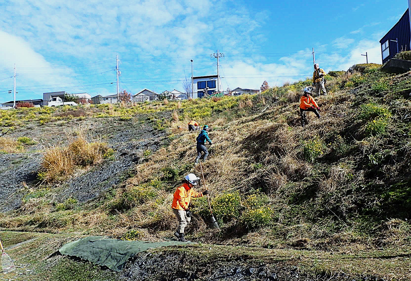 2024.12.10 未分類 今日は、クラブの除草活動日でした 12月に入り、クラブの活動に参加して、除草活動をしました。法面の除草は、防寒着で行わないと法面は、吹きさらしになり、お日様が当たっていても結構冷えます。今日も日中気温 10度前後でした。除草した草を法面から書き落とすのも力が入り、着こみすぎて、汗が出てきました。風も吹いて寒いやら力仕事で暑いやらごちゃまぜの体感! 投稿者: 昭良林 未分類 豊能にも冬の訪れかな前の記事 落ち葉の絨毯次の記事