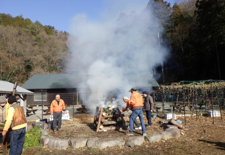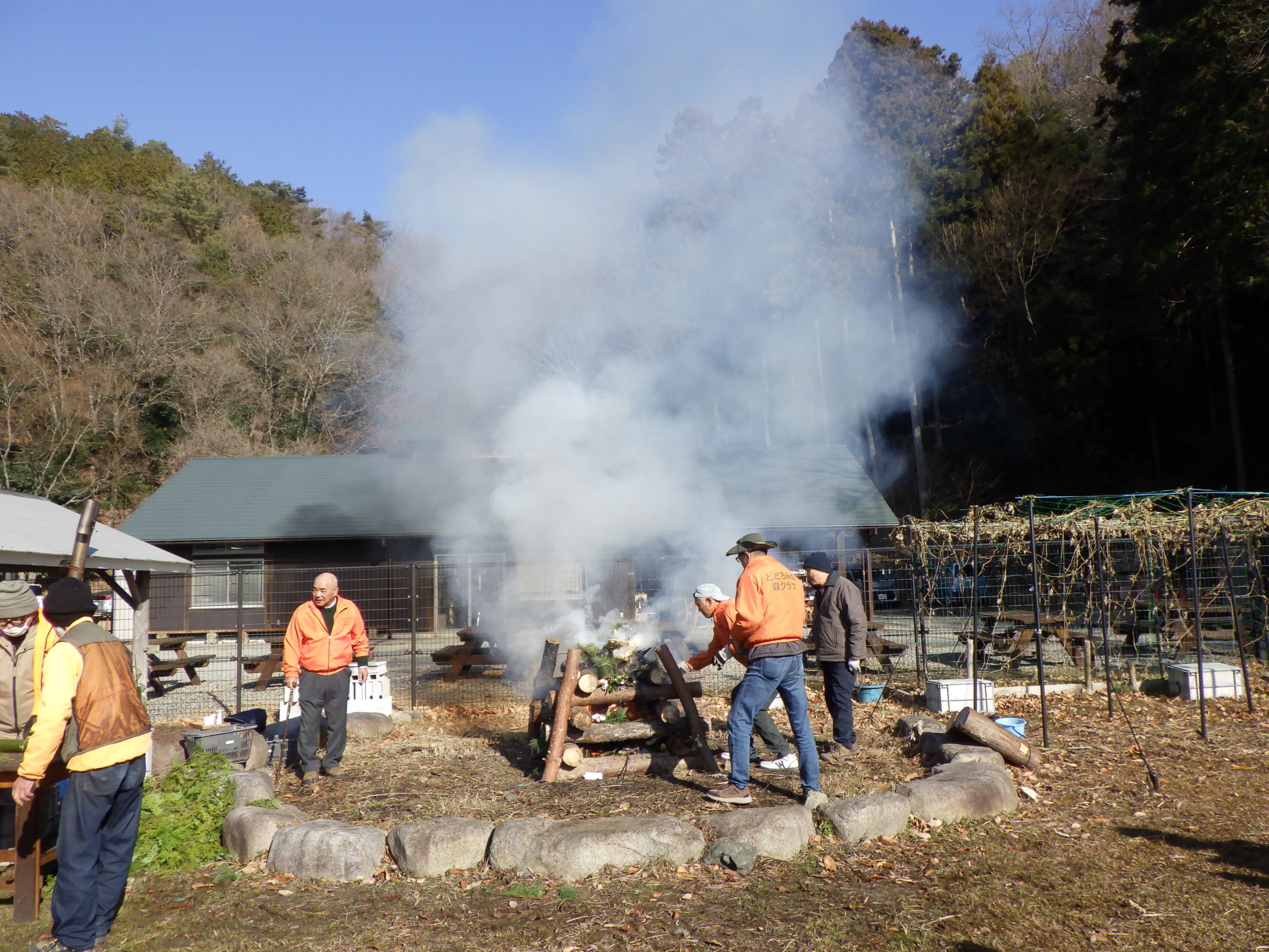 里山の恒例となった「とんど焼き」が今年も行った。箕面森町は住宅開発から15年が過ぎ今では、5000人近くの方が住まわれています。このちで里山の環境を守り育てようとNPOに入り活動しています。毎年この時期に、間伐材・倒れ木などの森の活動で搬出された。木々を段組みして3時間近く櫓が持つように調整を昨日して今日の本番を迎えた。朝から良いお天気ん恵まれ、うまく焚き上げられたそして近隣の方が、お家で飾っていた正月飾りを持ち込まれ、焚き上げ「今年も無病息災」を祈願された!