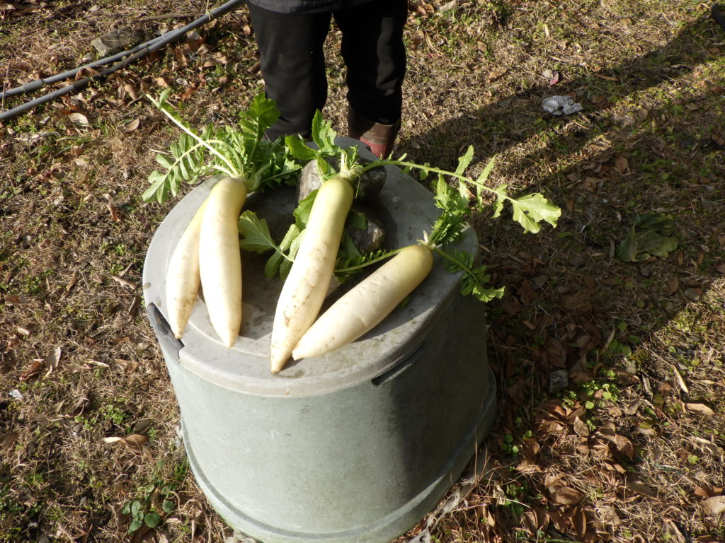 今日は、そんなに寒くなかったのとボチボチお家で食べる野菜が、切れてきたので、収穫に「ほんと助かります」昨年、植えた冬野菜が何とかこの寒さに耐え収穫できてます「大根・白菜・水菜・サトイモなど」ほんと貴重です「もうスーパーで見たらベラボウな価格」手が出ないのが現状、何とか畑の野菜がこの寒さに耐えてくれてます。寒冷紗が寒さをしのいでくれてるのかな?もう少し頑張ってよ!!