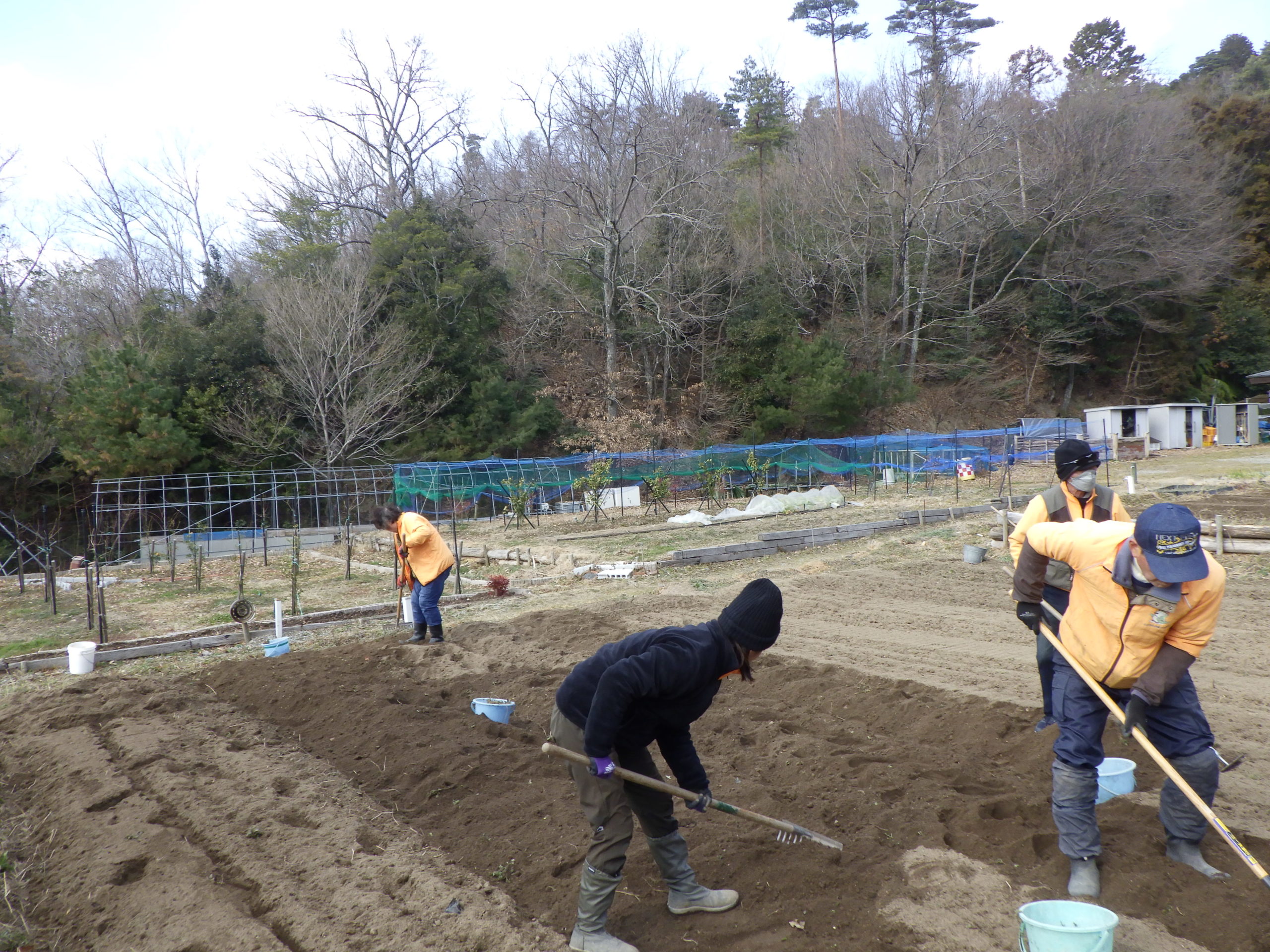 今日は、寒かったです!花壇づくりで昨日に続き、腐葉土を入れていき外周半分の花壇に他施肥入り、腐葉土が引き詰められました。一輪車の運搬 二人で堆肥置き場から20往復位かな、私は、堆肥置き場の中で運ぶ堆肥を入れる役、昨日は、汗かきましたが、今日は、風と温度の低さで汗も出なかったですほんと里山は寒く吹きっさらし!何とか花壇の堆肥・腐葉土は入れることができました。隣の菜園も今日は、「ジャガイモ」の植え付け前の土づくり!!