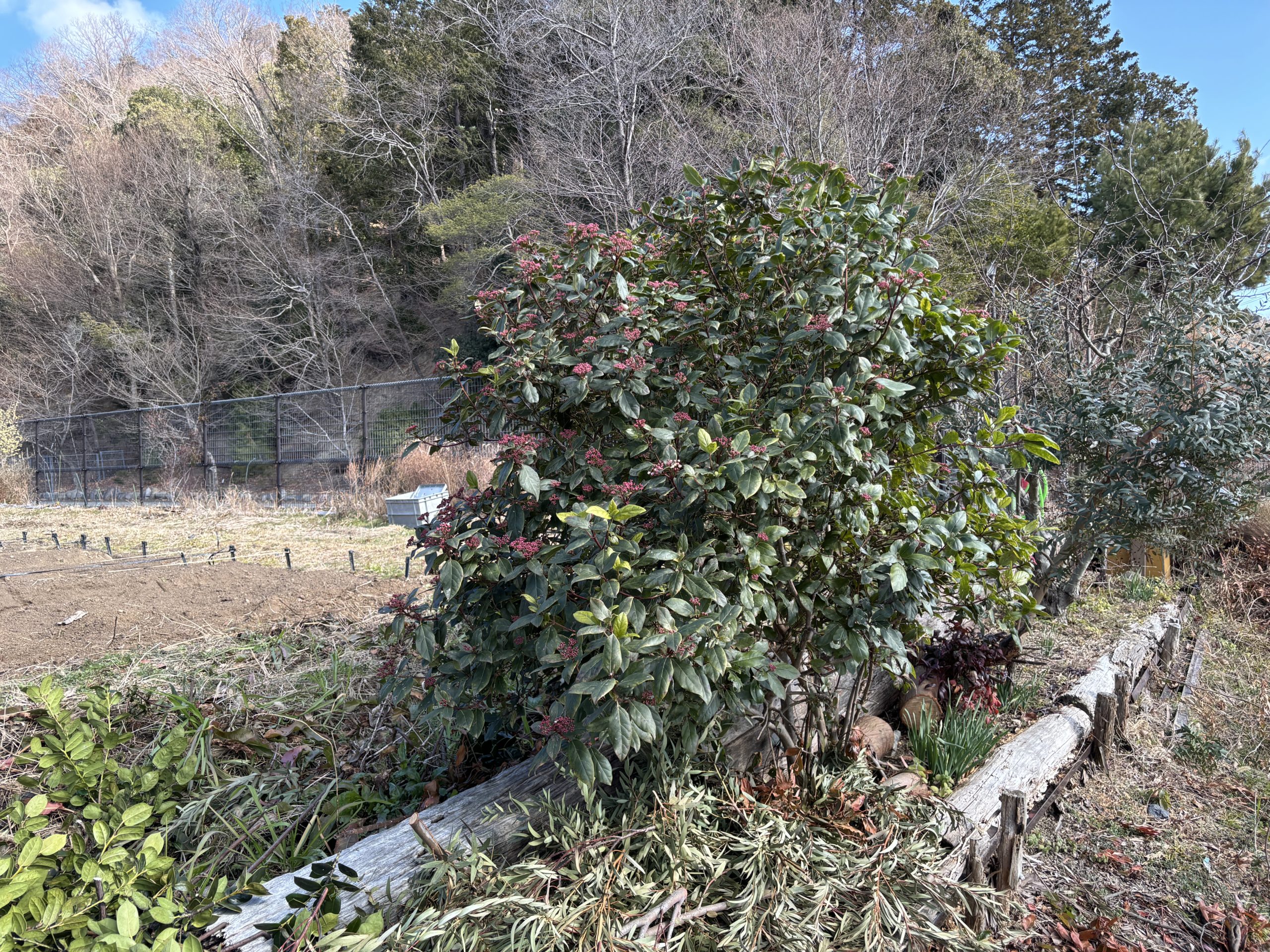 朝、里山へ行くときはまだ 0度(8時30分)寒いです。箕面森町の菜園は、ちょうど風の通りがよく今で言う「メッチャサムイ」管理小屋でストーブに当たり、10時前まで、ストーブのもり!さあと掛け声かけて菜園に出てフェンスの前の木の枝の選定、ここ数年刈ってないので伸び放題「高枝切のチェンソー」で枝切を始める軽トラで運ぶくらいの枝を切り、菜園が日陰にならないくらい切り落とした「ようやく体があったまってきた」これですっきりしたが、余計に寒く感じる、お昼になっても風ガきつく寒さが和らがない!