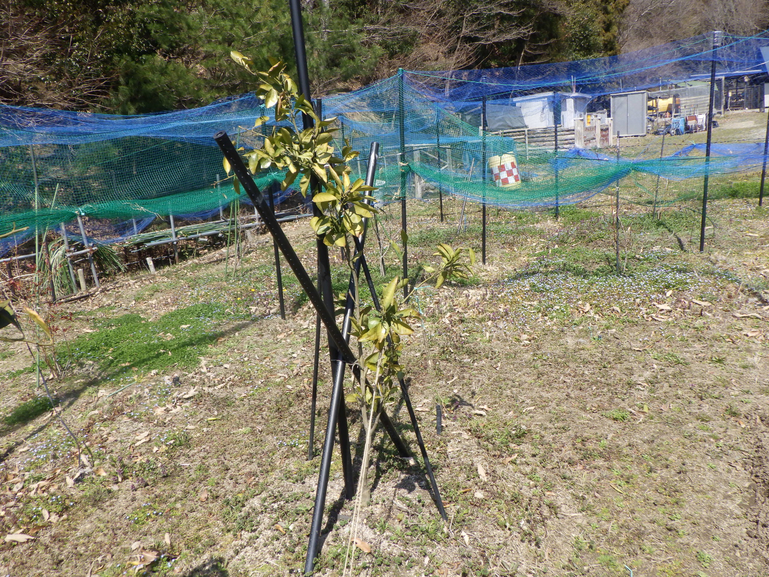 箕面森町の里山管理小屋の果樹園も今日は、ぐんぐんと暖かくなり「ミカンや柿の木など」元気に冬をこし新芽が出てきました。まず、春植えをする「ミカンの木の土づくり」冬植えの白菜・大根の収穫の終わった畝を耕運機で慣らし土を混ぜました。来週、土の酸性度を測り石灰を入れるか見極め堆肥を入れます。そこへみかんの木を植えみかん畑を増やします。昨年植えたミカンの木の枝を広げていきました。ほんと春は良いですね!