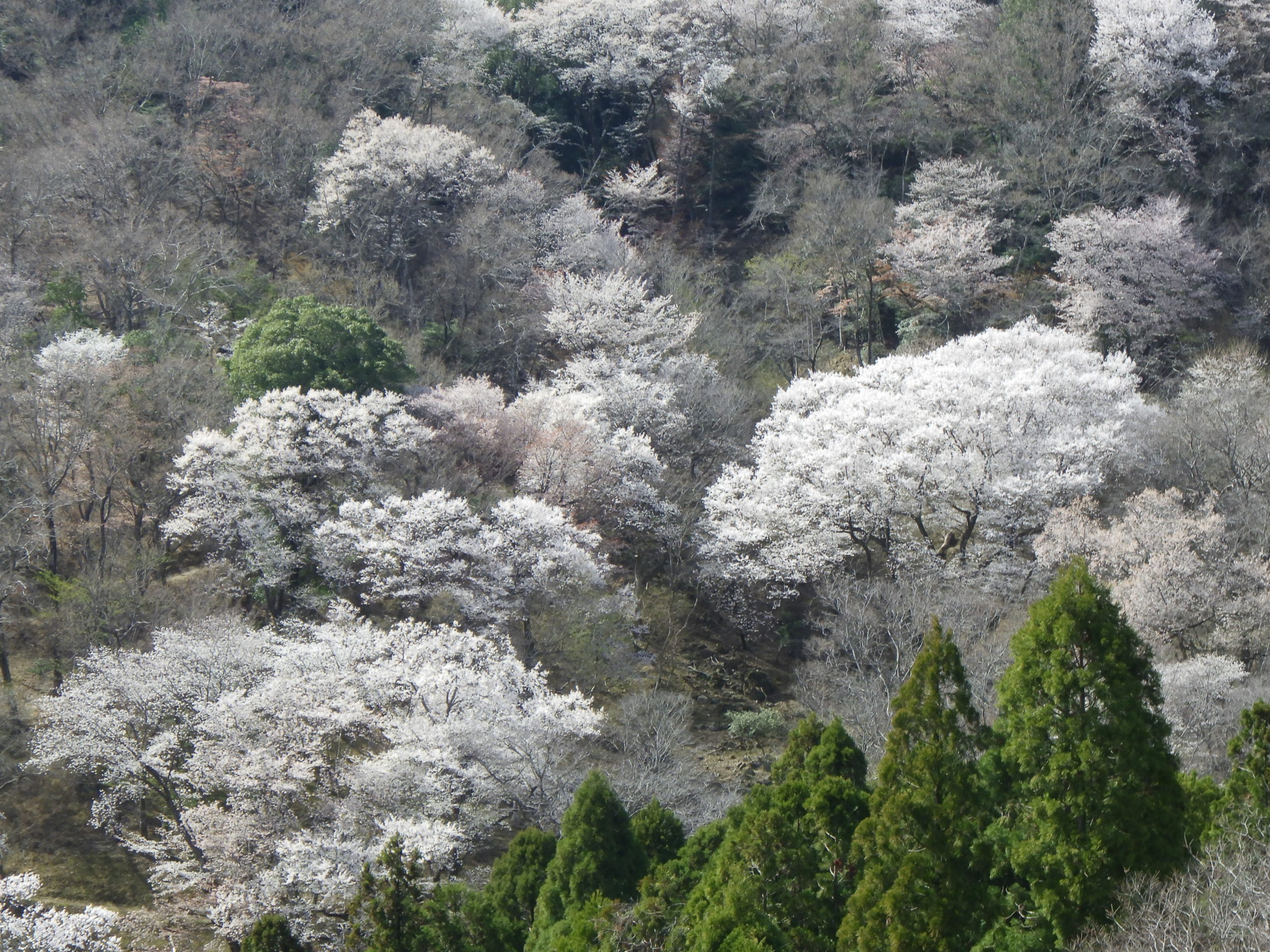 黒川の山桜は、吉川~能勢に抜ける国道477号線の法面に咲く桜は、絶景だ国道が山の中腹にあり、谷の稜線に山桜が咲いている「もう満開で花弁が散りだし」その光景も見ごたえがある「能勢への街道は、国道の下にあるが、国道沿いからの桜の眺めが奇麗で思わず止めて見入る」あちこちの桜も「ボチボチ葉桜」になるのかな!