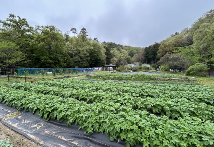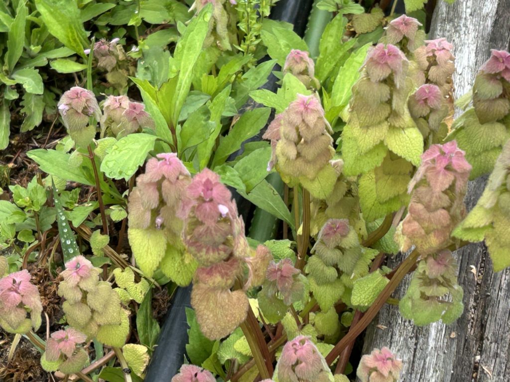 昨日の夕方から天気が下り坂になり、今日も雨が降ったり止んだ入りの天気でした。里山の活動日でしたが、果樹園も足元がぬかるみ外から見守っていました。果樹園の横のイベント用の菜園のジャガイモが良く育ってきました今年も成長が早くなりそうです。そしてこの雨と暖かい気温とで、木々もより元気になりそう!そして野草も刈っても刈っても伸びそう、「仏の座」が奇麗な花をつけ存在感を増しています。