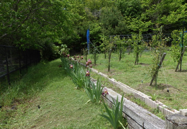 今年は、お天気の変化が目まぐるしく変わり、結構雨が多いです。果樹には、良いです、反面、野草の成長が早く刈払いと追いかけっこの日々で、ほっておくと虫が瞬く間に増えていきます、今日も昼過ぎまで野草の刈払い「ひと月前位に、土盛りと手作業で根元まで引き抜いて」置いたので今日は、ビニールを付けて刈払い機で根元近くまで刈り込みました。野鳥が、虫を探しにあつまってきて賑やかです。当分この作業の繰り返し!