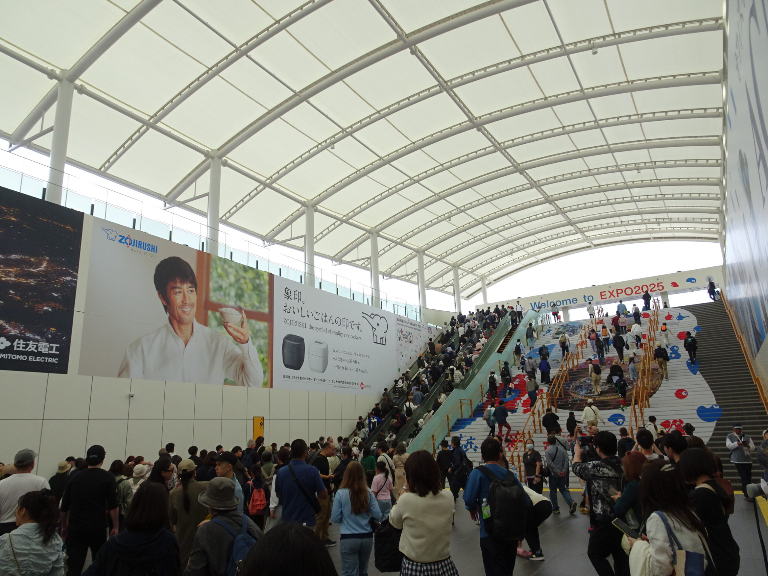 豊能から池田市まで車でゆきそこから阪急電車に乗り換え梅田で地下鉄に乗り換えそして本町へ最後に、地下鉄中央線に乗り換え「夢洲」万博の東ゲートに、阪急石橋駅9時59分の急行電車で夢洲着10時50分 1時間弱で到着、夢洲の東ゲートは、混雑していて「万博ゲート入場 1時間かかり入場」11時の予約でまあ上出来かな!スマホの予約で無事入場、連休明けで空いているという予想でしたが、甘い、中も外も人でかなりの混雑!大屋根リング今日は、半周して大きなパビリオンは、皆先行予約か当日は、厳しそう!会場の雰囲気を満喫して家路に!