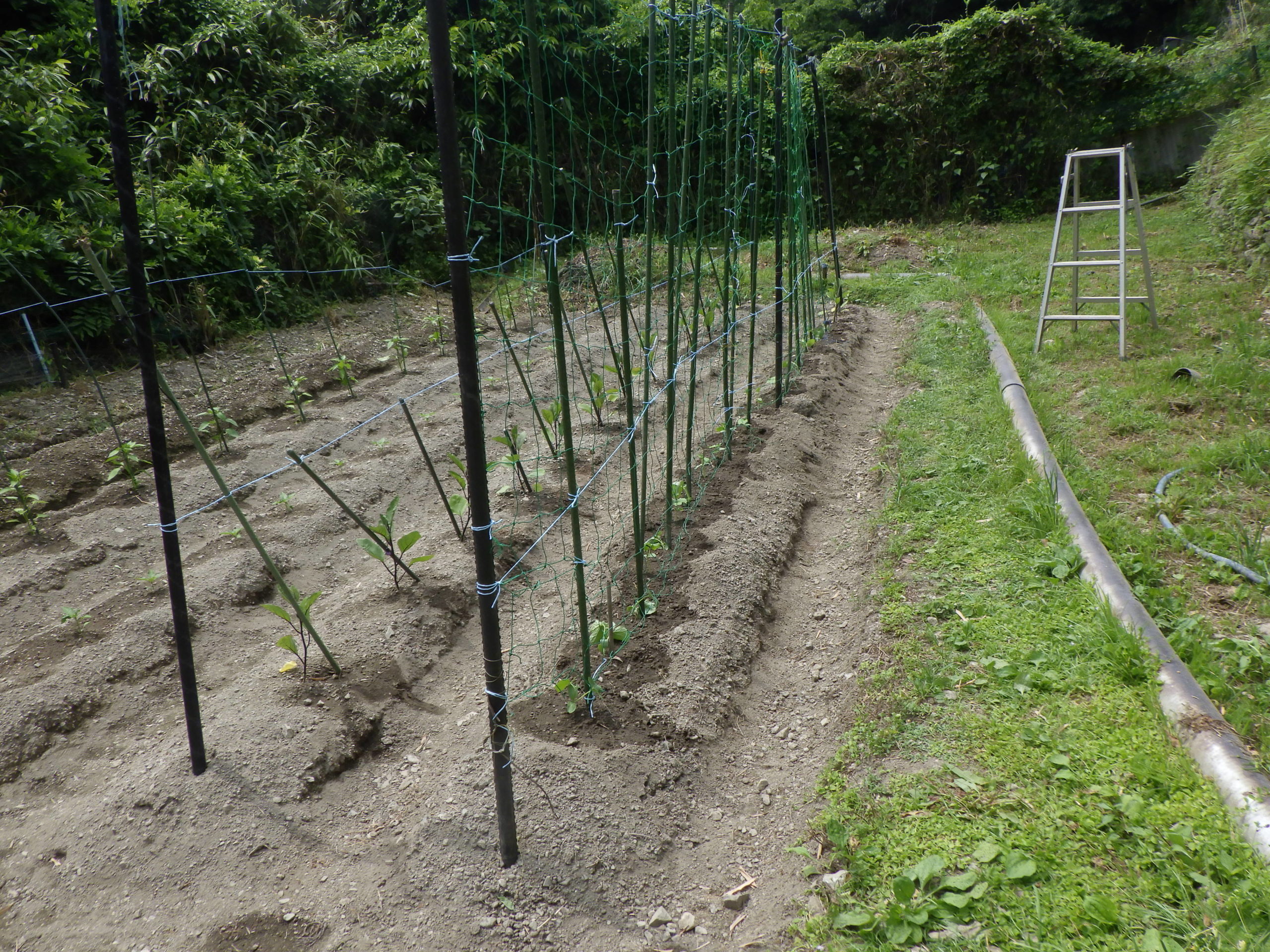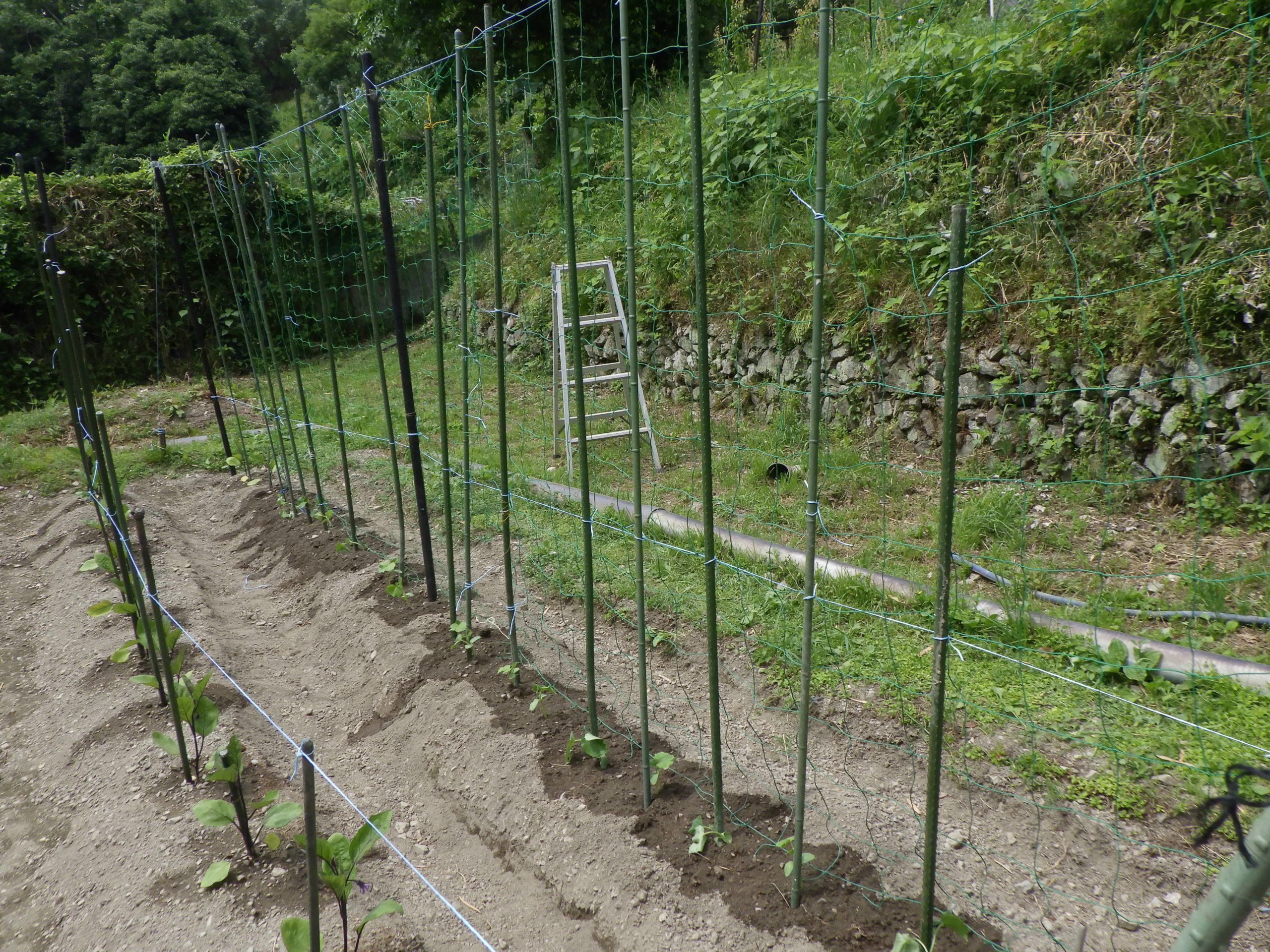 - 前から「キュウリ・ピーマン・万願寺・ナス」を植え付け