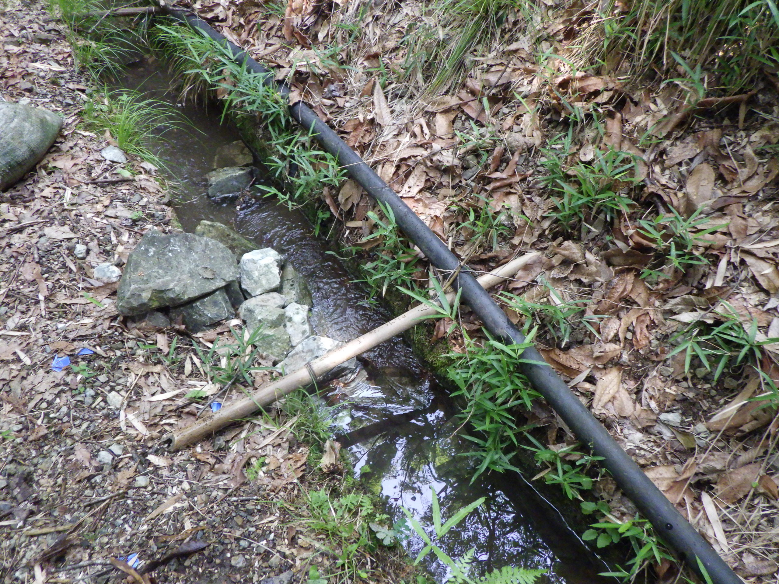 朝から畑に出かけた、豊能も今年の暑さは、厳しい「だんだん菜園」へ行く時間を午前中にして、おひ里頃で作業が終了するように、今日は、この暑さでも耐えれるように、水の確保というか、用水路の掃除を行った、雨が降るたびに枯葉や木の枝が落ち例年だったら水の勢いで流れるのですが、年々降雨量も少なくなり、勢いがなく途中で退席するようになっている、落ち葉枯葉を除き水の確保、なにせ水が流れないと!