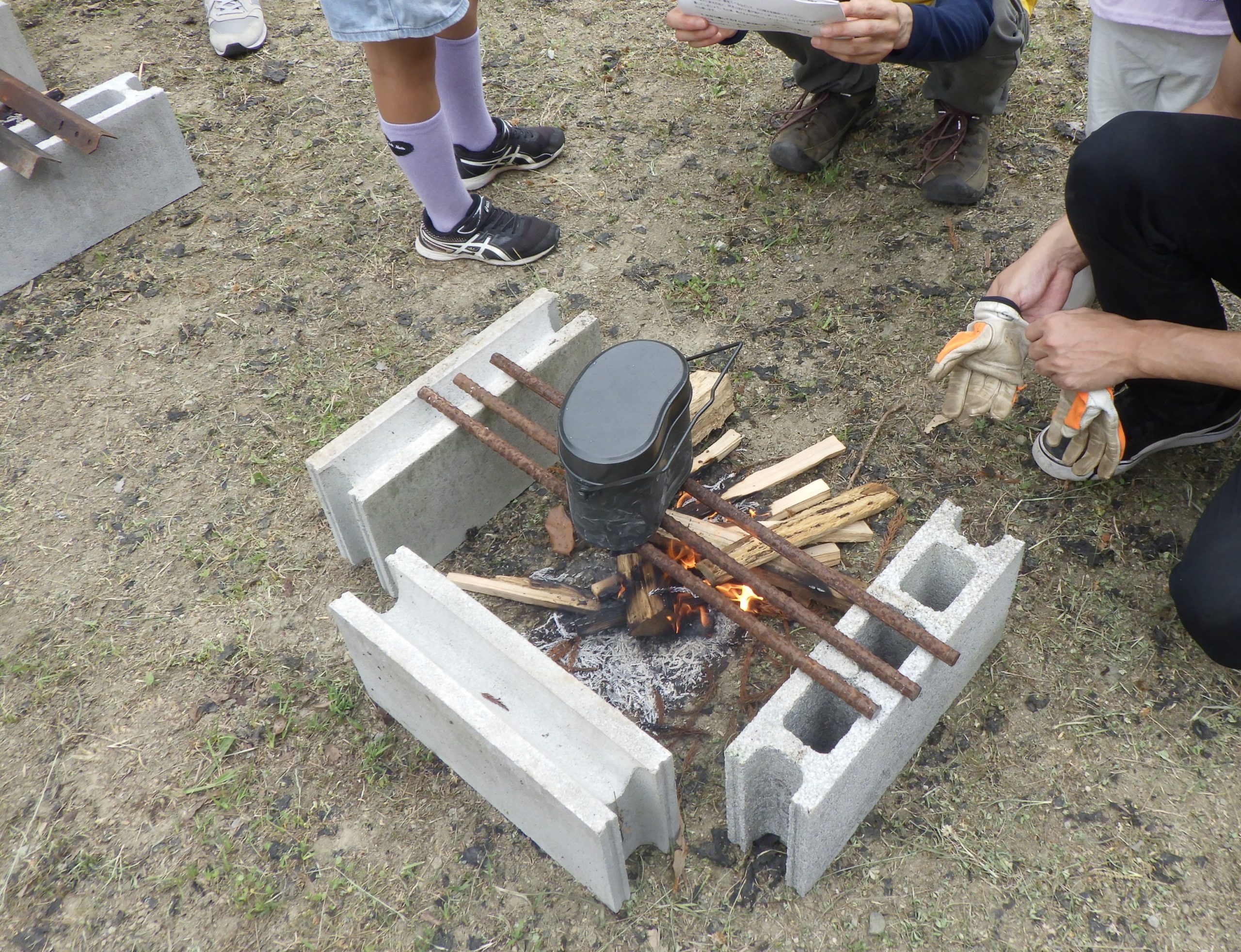 飯盒でご飯を炊くのは、最近の都会の人は、経験が少なく「薪で火を焚く」そんな景観も少なくみんな真剣そのもので取り組んでいた。