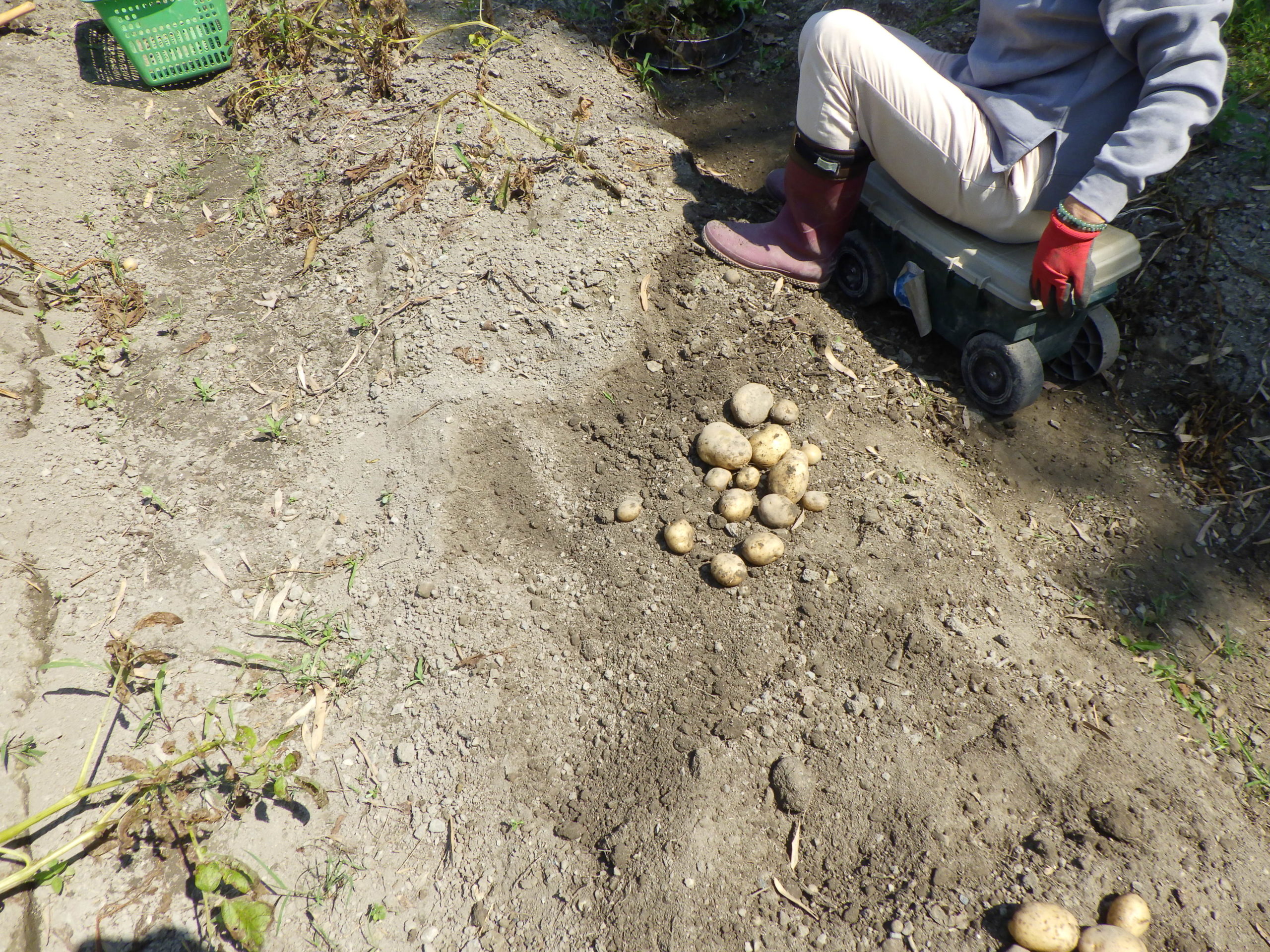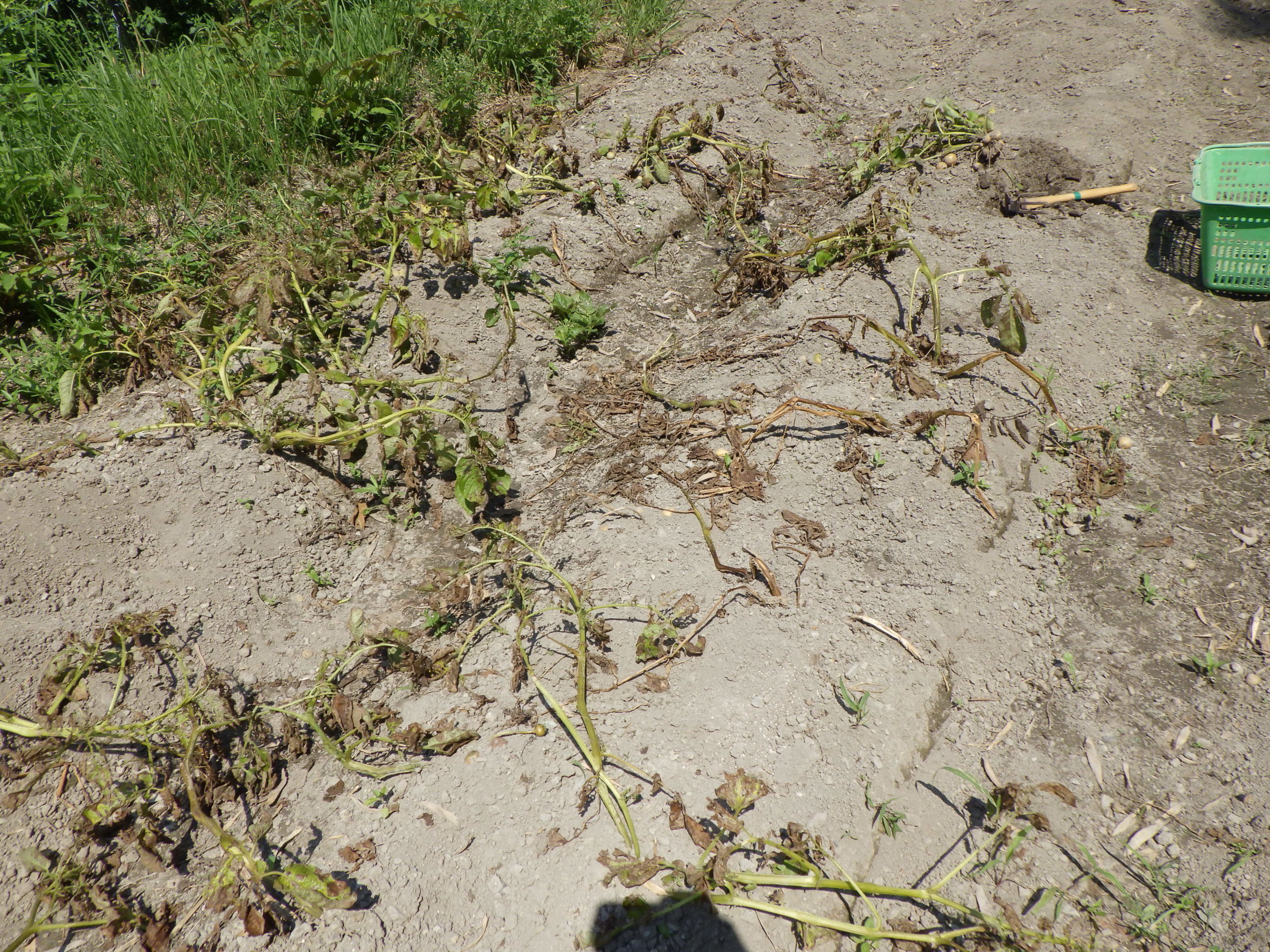 今日は、朝から「だんだん菜園」に、毎年夏が早くなってきている、今年は、梅雨も1週間ぐらいでもう梅雨明けだ、あまりの暑さで、作業も昼までで、中止した。取り合えづジャガイモ掘りを終わらないと、今日でめどがつき「後、メークインのジャガイモ少し残すのみ」実は、今年は、取れすぎて、持ち帰りできないほどで、もう半日ぐらいかけて掘り起こしを行う。それとあまりの暑さで、野菜に水やりを十分すぎる穂でやらないと育たない、水やり行い、昼には帰宅。体がもたないよ!