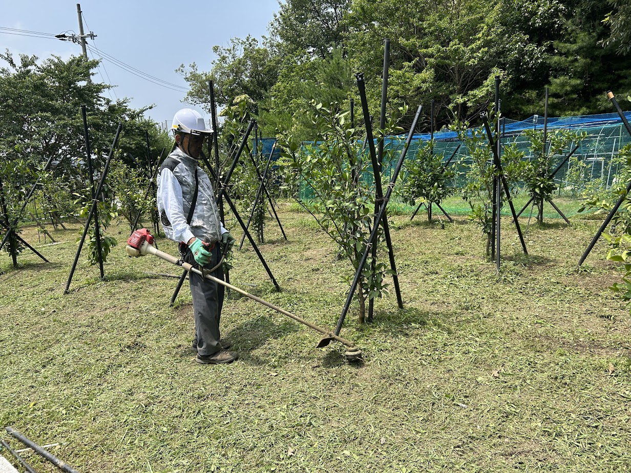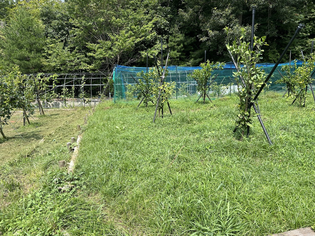 もう暑いですねが日常の挨拶に、今日は、NPOの活動意日です、それぞれの持ち場の整備、果樹園では、草の除草と果樹の虫などの確認そして果樹の成長チェツクです、しかし野草の成長が早く刈っても刈っても生えてきます、6月過ぎまでは、根気よく刈るしかないです「果樹の木の根元を除き刈払い機で刈り込み」そして木の根元は、手刈り、もう汗だくの刈込、11時過ぎには、33度以上気温が上昇し11時過ぎで作業中止、危険な暑さです。