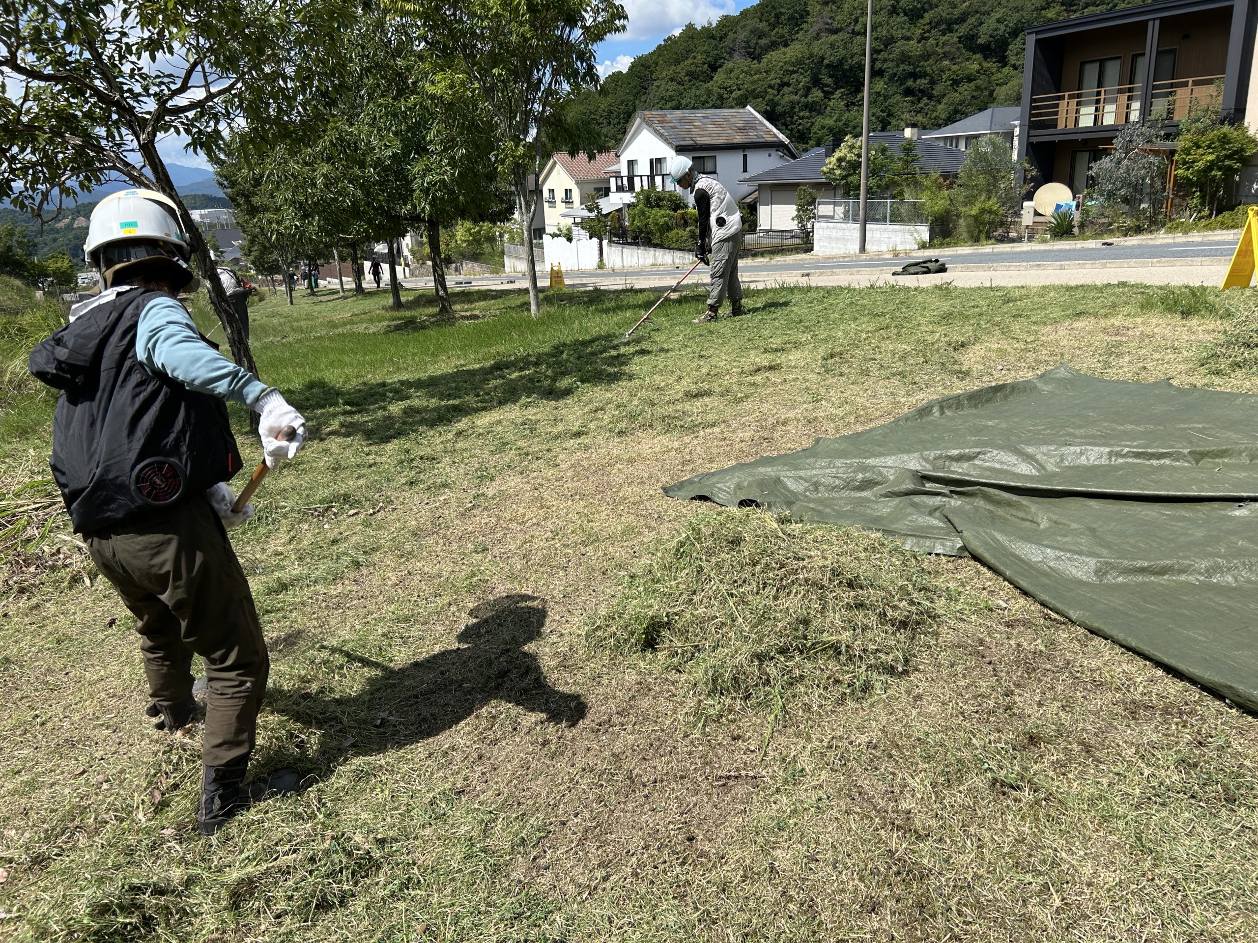 豊能の箕面森町は、標高 250m ~ 300mあり、大阪近郊より、気温4~5度の低く避暑地のようなところと言われてきました。しかしこの温暖化が言われだし日中気温は、ここ数年 30度超えです。でも朝の気温は、25度を下回ってきており、秋の訪れを感じます 8月は、熱中症の危険もあり、里山の環境活動として行ってます「緑地部の除草活動」を控えていましたが、9月に入り、里山の除草活動を再開しました「刈払い機で除草し熊手を使い集草していきます」今年は、草の成長が、大きく中々手ごわそうです!