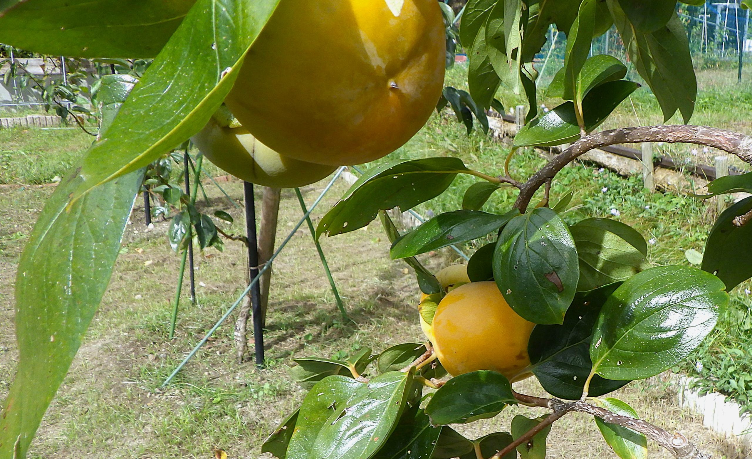 柿の実の野鳥被害受けないようひも替えをしたのが成功まだ食べられてない!!