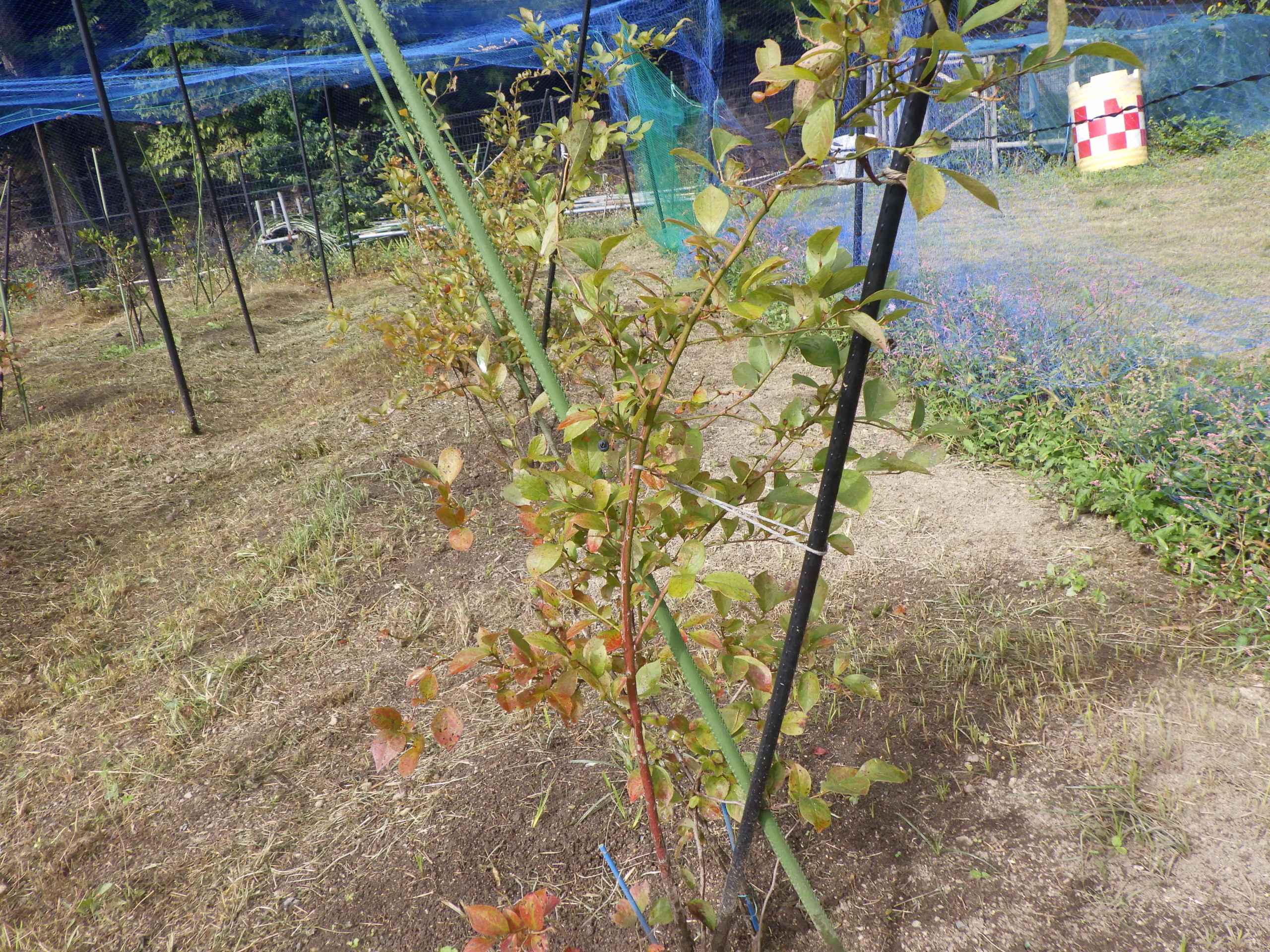 関東の八丈島付近を台風が通過し、ここ豊能でも朝から強い風が吹いていました雨は、降りません9時過ぎに今週は、雨を予想していたので、水やりは昨日もしませんでした、京、朝から「果樹園と菜園」の水やりに来ました、広いので30分ぐらいかかって、水やりを「柿の実が大きくなり、褐色にもう少しで食べごろかな」ブルーベリーの葉も褐色に8なり、里山の秋も深まりを増してきました。