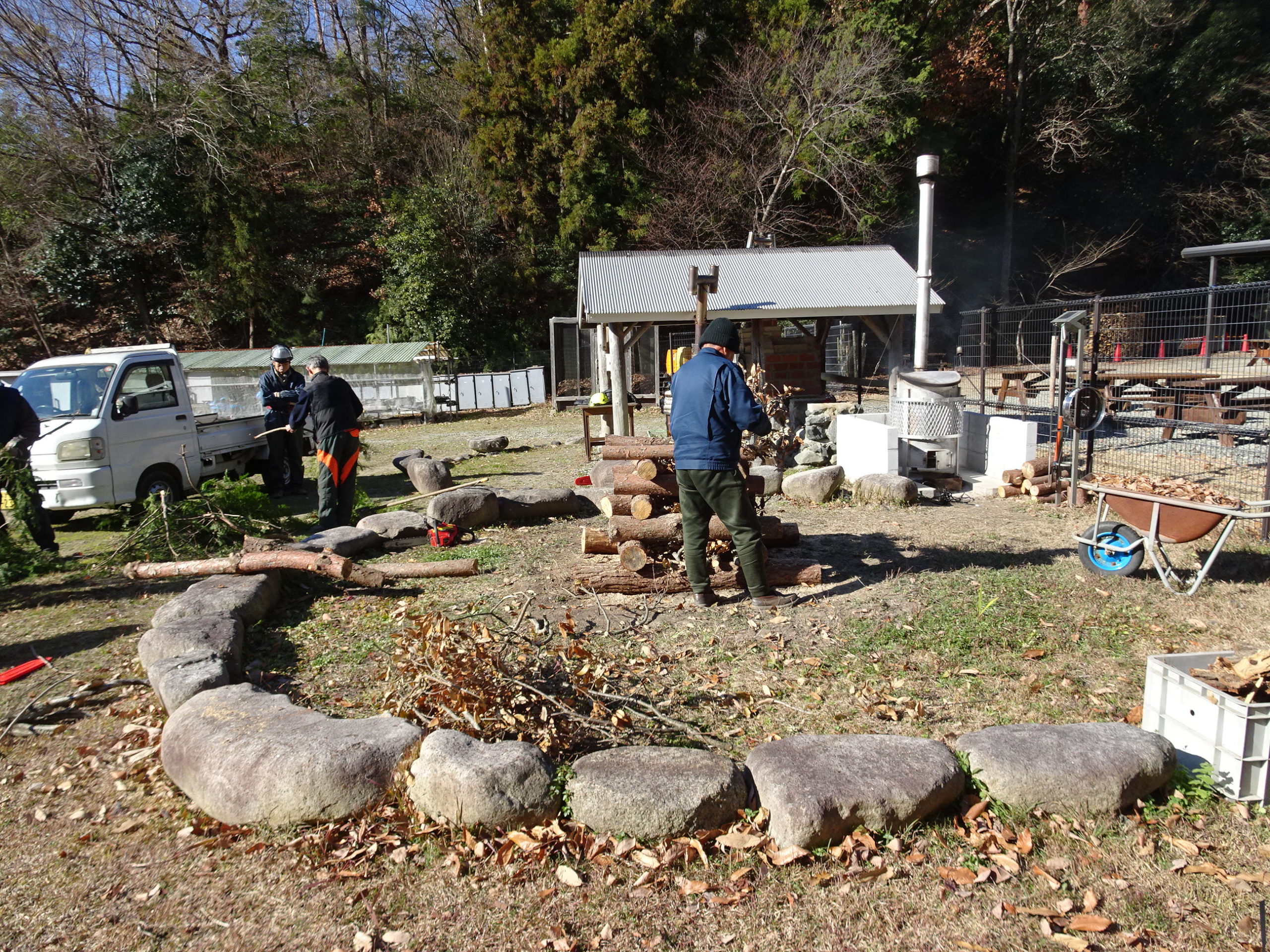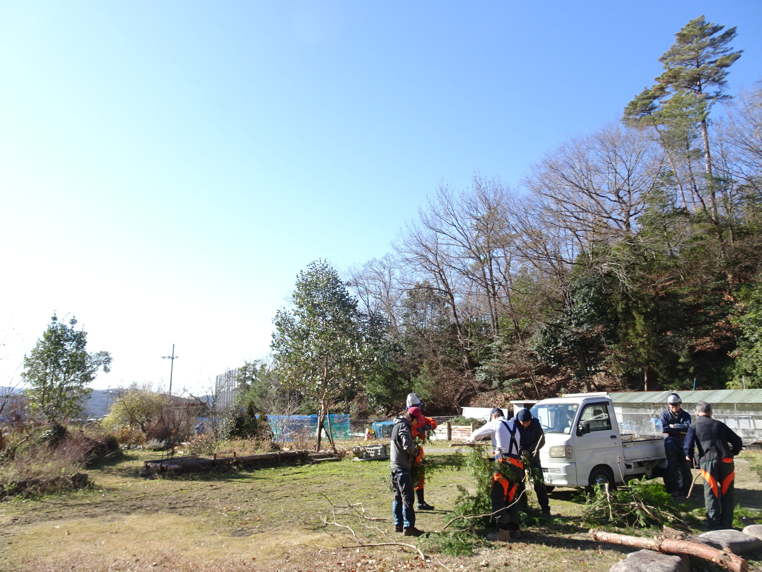 今日はNPOの活動日、早いもので松の内の締めくくりの行事として明日は恒例の「とんど焼き」をします、朝から、里山の間伐や伐採した木々を利用して「四角く台座をくみ上げ」中に竹や松の葉枯れ木を入れ、地域の人が正月飾り・しめ縄などを持ってきてお焚き上げ出来るように、汲み上げました!