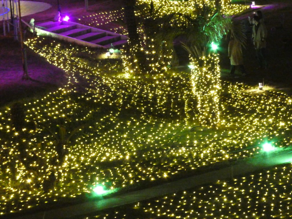 リゾートの夜間ライトアップは波音も聞こえ癒されます