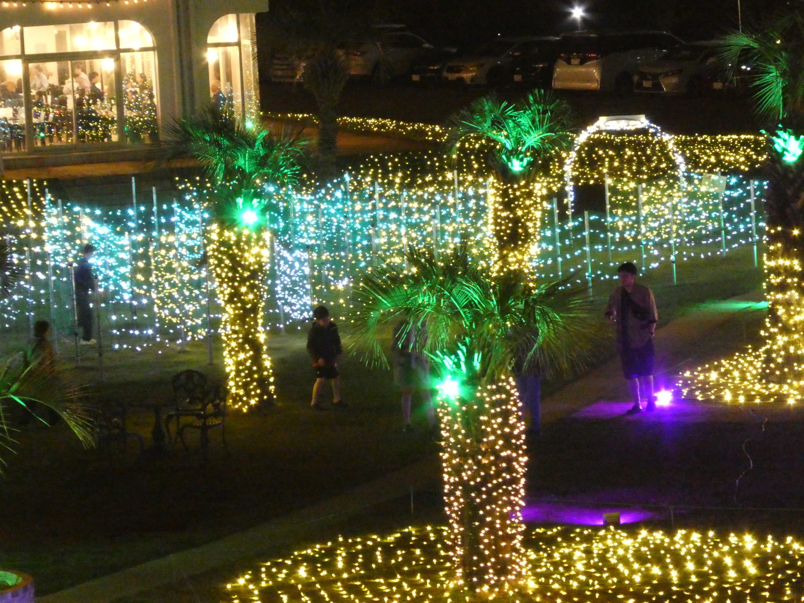 リゾートの夜間ライトアップは波音も聞こえ癒されます