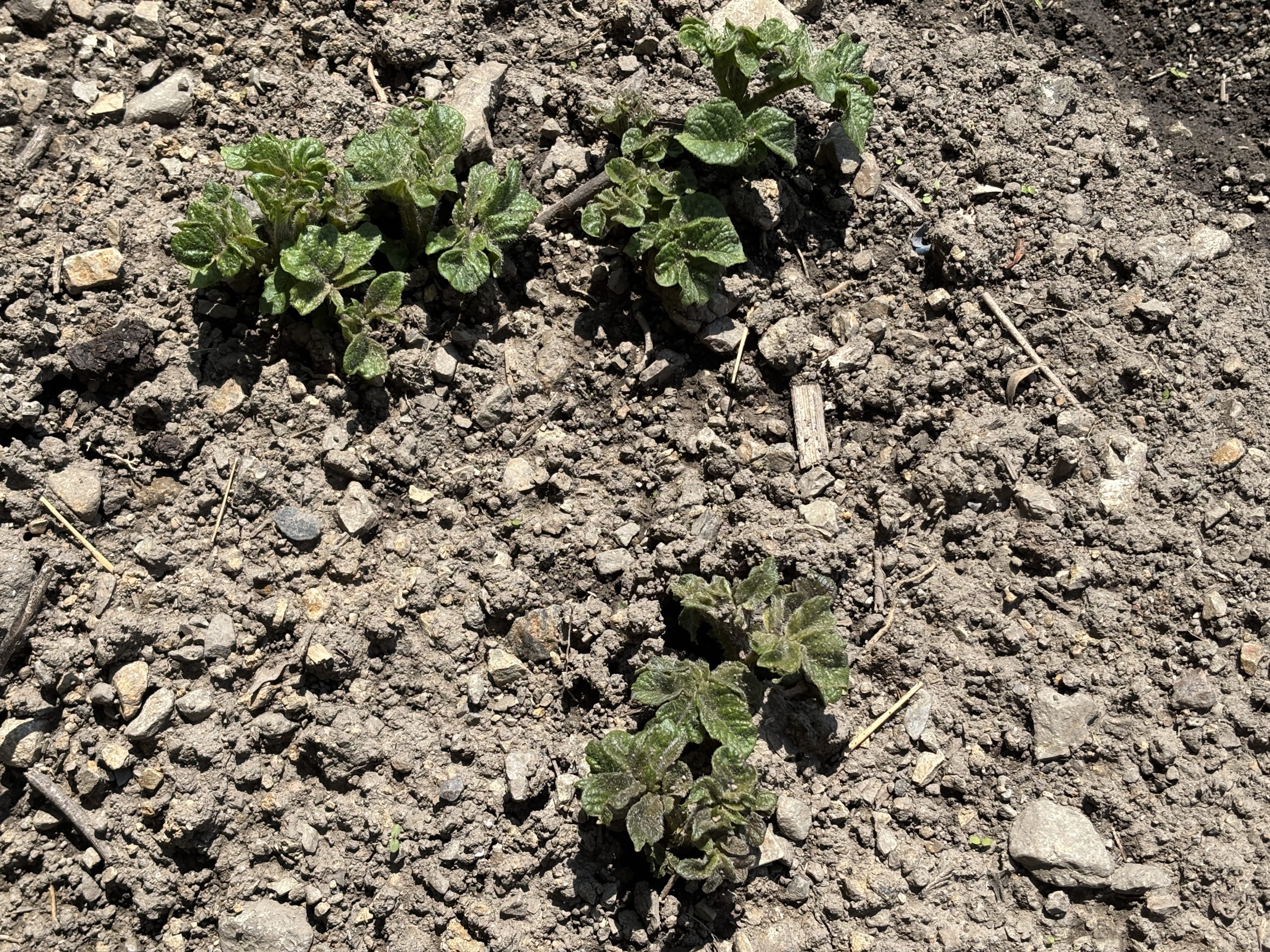 じゃが芋の芽がようやく顔を元気そう!